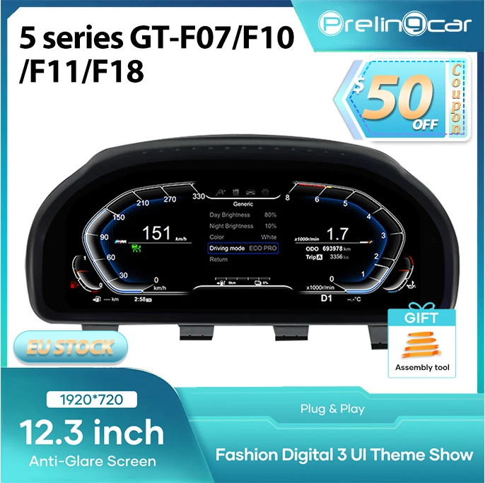 Upgrade your interior with this 12.3-inch digital dashboard designed for BMW models including F10, F11, F18, F06, F12, F13, F01, F02, and F03.