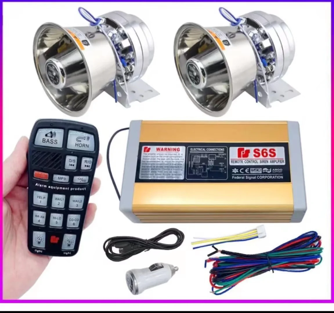 Designed for vehicles, it functions as a police-style siren and PA speaker system.