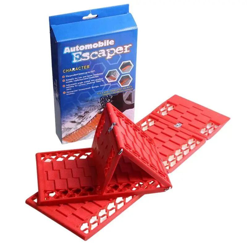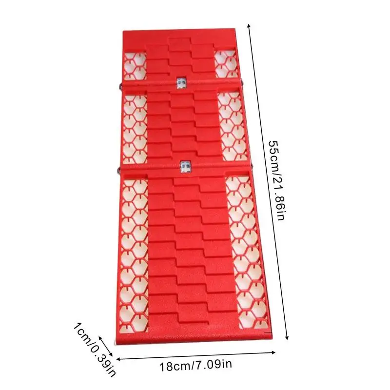 Tackle tough terrain with this 2 Pack Foldable Car Traction Boards, designed for reliable self-rescue when your vehicle gets stuck in sand, snow, mud, or loose gravel. These heavy-duty recovery tracks feature a foldable design, making them compact, lightweight, and easy to store in your trunk, toolbox, or overlanding gear kit.