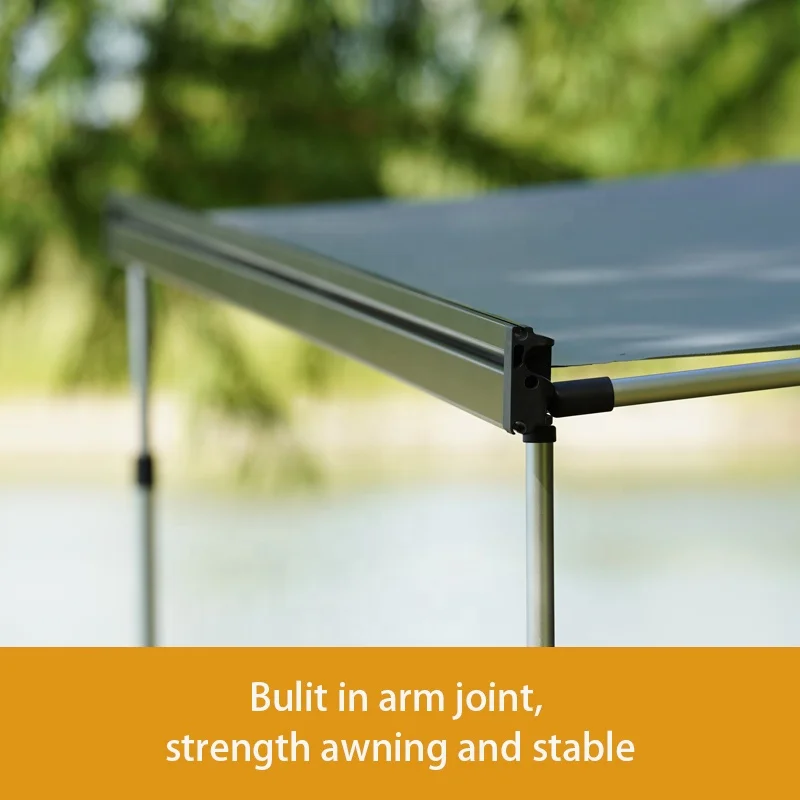 Designed to mount securely to your vehicle’s roof rack, it creates a spacious shaded area beside your car.