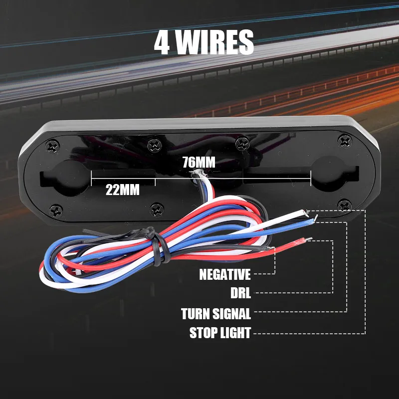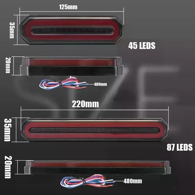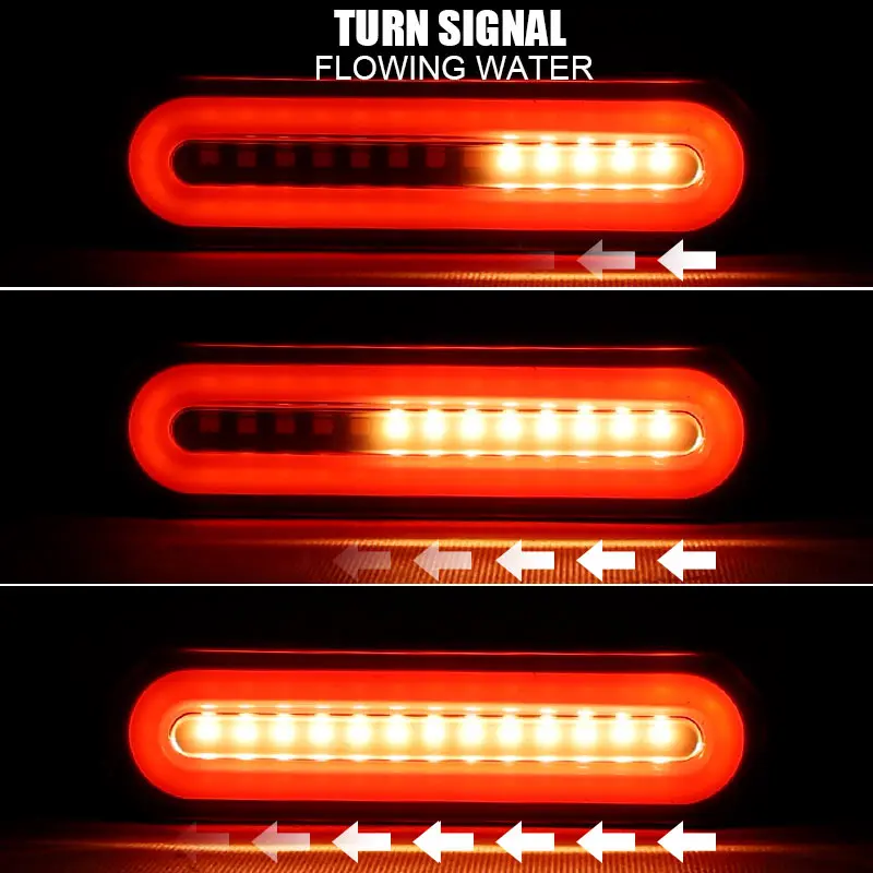 The advanced sequential amber indicator provides a smooth, eye-catching flowing effect, while the bright red brake and tail lights ensure maximum visibility and safety on the road. Its universal 12V–24V compatibility makes it ideal for small vehicles and heavy-duty machinery alike.