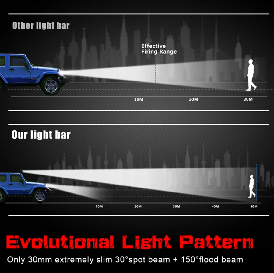 Its ultra-slim single-row design allows easy installation on tight mounting points such as grilles, bumpers, and roof racks.
