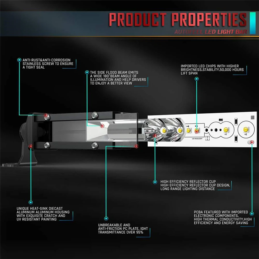 Built with durable aluminum housing, the light bar offers excellent heat dissipation and long operating life.