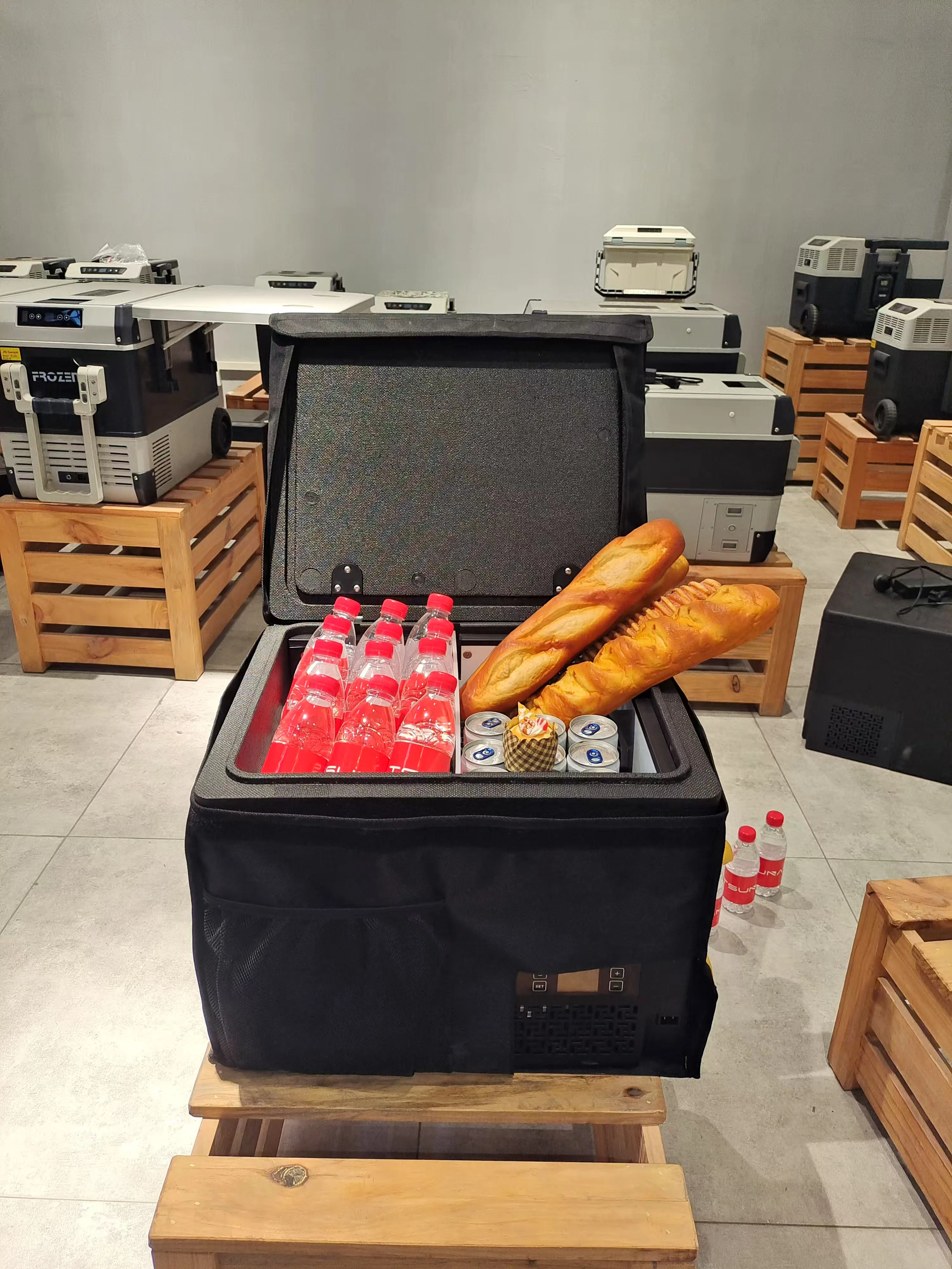 The spacious 40-liter capacity accommodates multiple food containers, drinks, desserts, and meal packages—making it ideal for large orders or long delivery routes. Powered by 12V/24V DC, this portable delivery fridge plugs directly into cars, vans, motorcycles, trucks, or electric delivery vehicles, guaranteeing reliable cooling on the go.