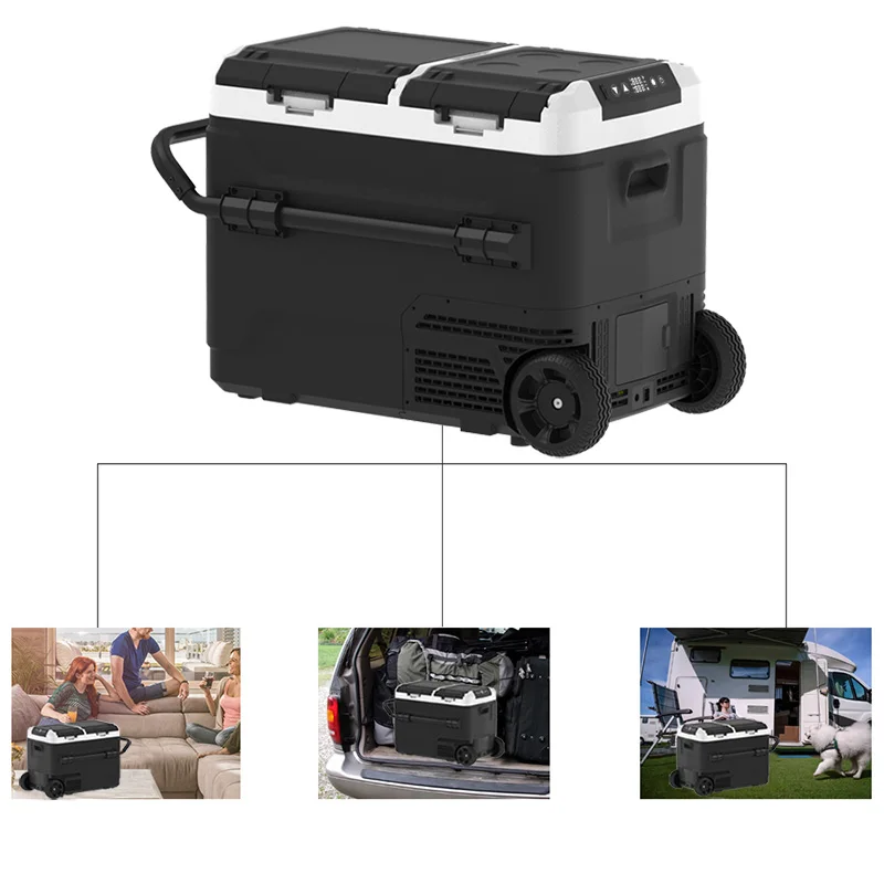 The spacious 40-liter capacity provides enough room for drinks, fresh food, meat, fruits, snacks, medical supplies, and more. Featuring high-efficiency compressor cooling, it maintains low temperatures even under high outdoor heat. Its rugged exterior and outdoor-ready design ensure durability on all terrains.