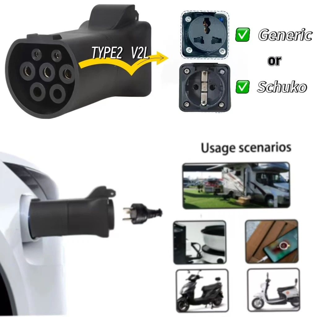 This Type2 V2L electric car discharger adapter enables vehicle-to-load power output from compatible EVs.