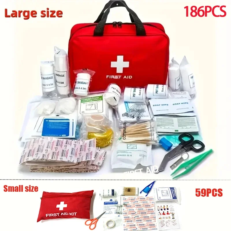 Stay fully prepared in any situation with this Deluxe First Aid Kit, available in 59PCS, 186PCS, or 245PCS variations to meet your emergency readiness needs. Designed for outdoor enthusiasts and families, this comprehensive medical kit includes essential supplies for treating cuts, sprains, burns, insect bites, and minor injuries during hiking, camping, hunting, fishing, travel, and survival situations.