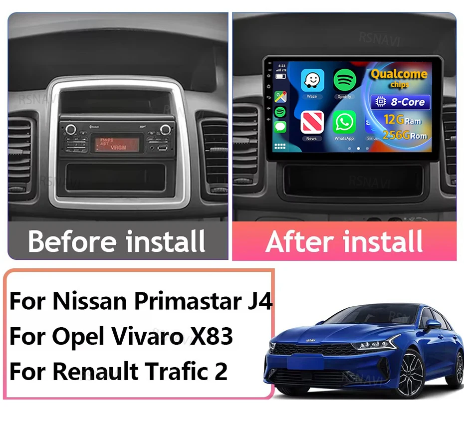 This Android 15 CarPlay stereo system is designed for Renault Trafic 2, Opel Vivaro A, and Nissan Primastar models from 2006 to 2014.