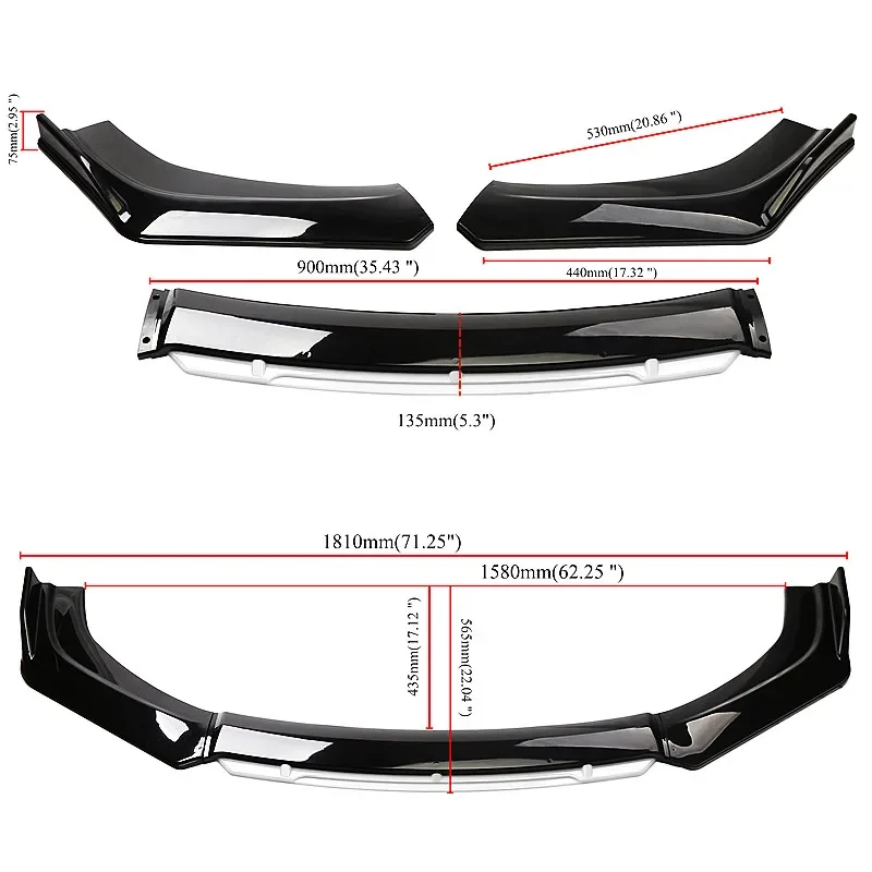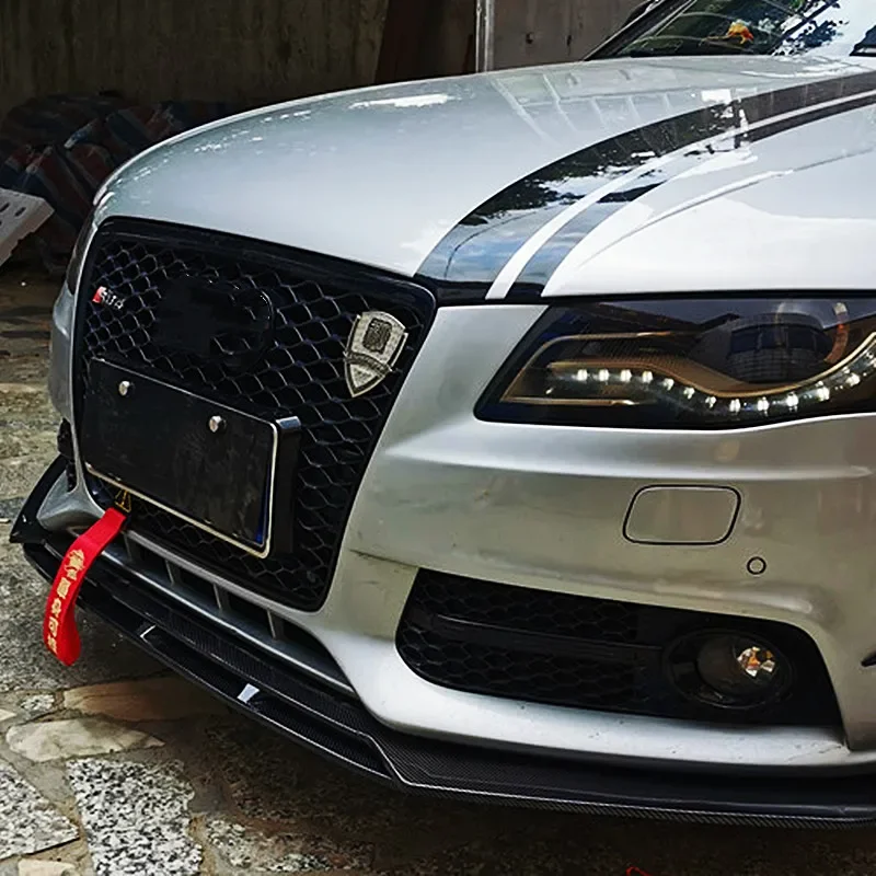 This universal front bumper lip spoiler is designed to fit a wide range of Audi models, including A3, A4, A6, Q3, S3, S4, S6, B6, B7, B8, and B8.5.
