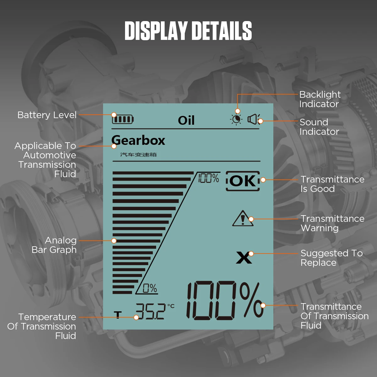 The device assists technicians in determining whether transmission oil needs replacement.
