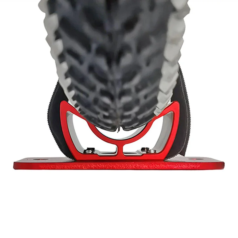 The rack holds the bike firmly by the front fork for stable positioning during travel.