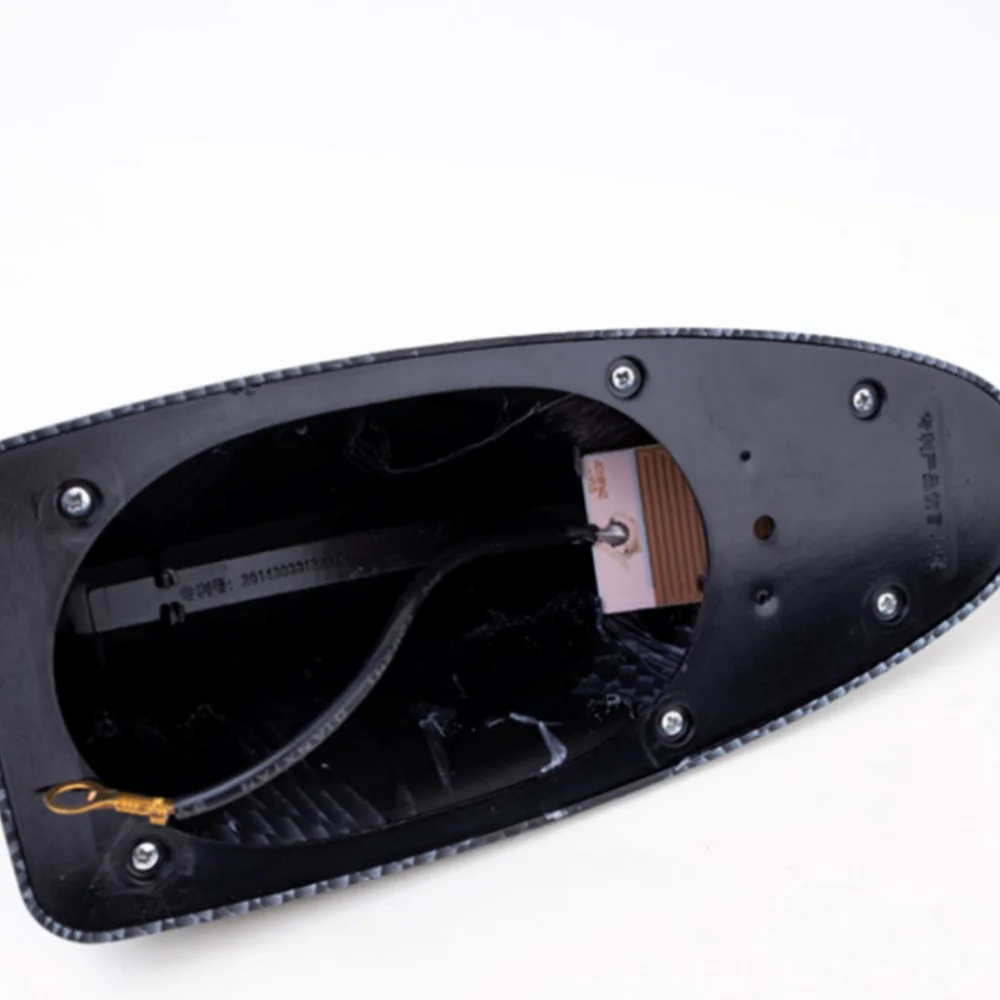 This carbon fiber shark fin antenna is designed to upgrade both style and radio reception.