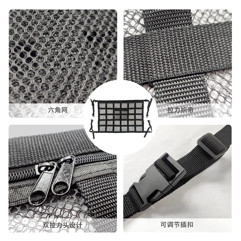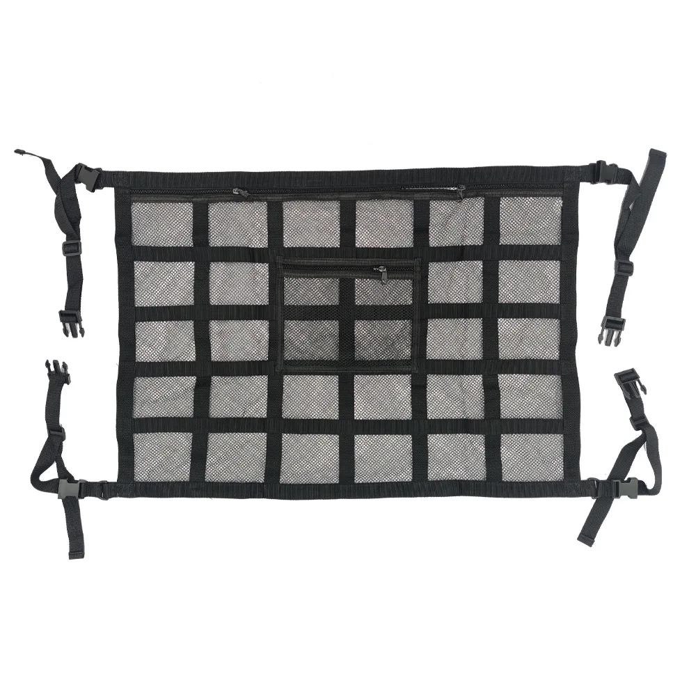 Made from strong, breathable mesh fabric, the ceiling cargo net is ideal for storing pillows, blankets, jackets, toys, snacks, camping gear, and travel essentials. The zippered or drawstring closure keeps items from falling during bumpy rides, while the elastic adjustable straps ensure a tight and secure fit.