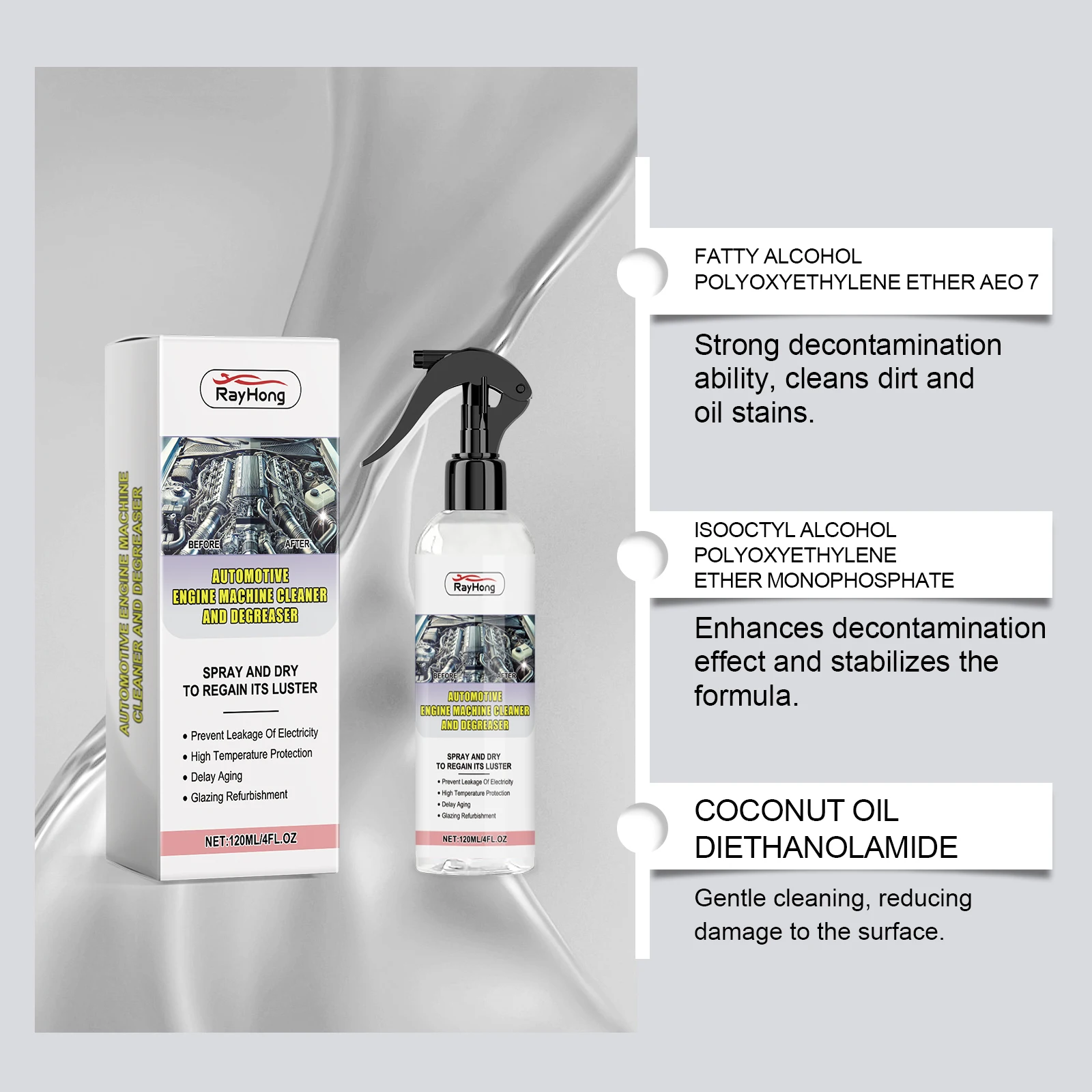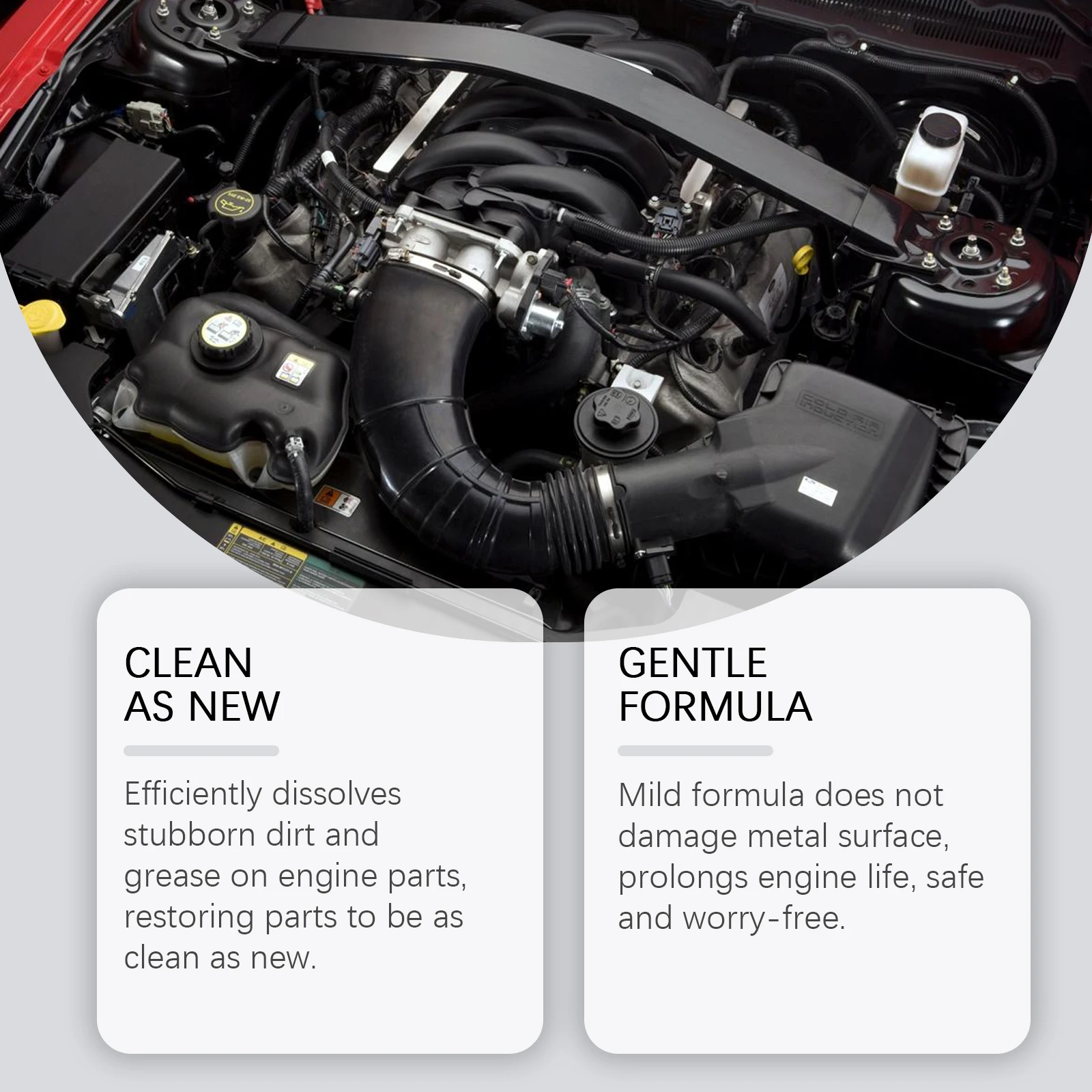 Ideal for routine car maintenance and engine compartment detailing, the formula leaves surfaces clean, refreshed, and free from residue—helping improve engine aesthetics and making future cleaning easier. Just spray, wipe, or rinse depending on the level of contamination, and enjoy a spotless engine bay with minimal effort.