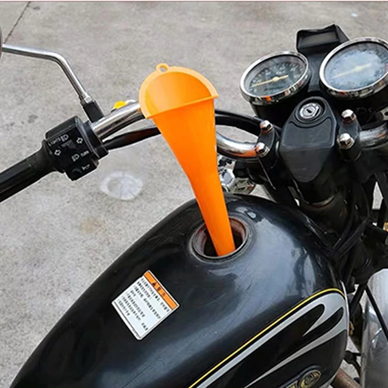 It helps prevent splashes and mess when filling gasoline or engine oil.