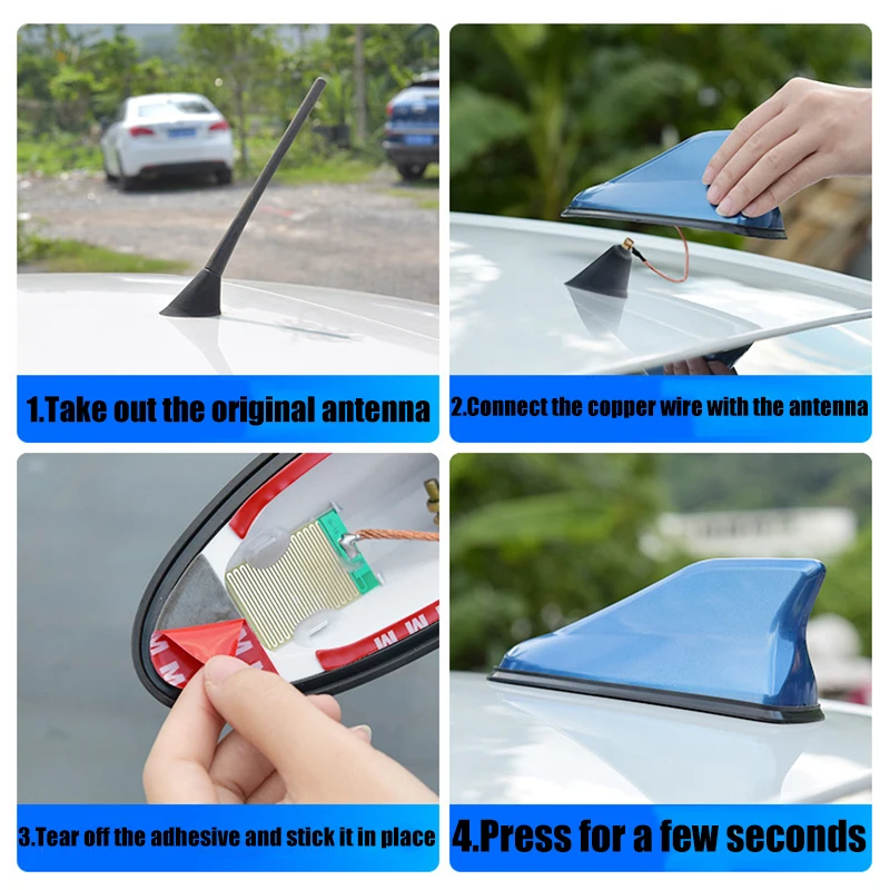 This car shark fin antenna is designed to enhance FM radio signal reception.