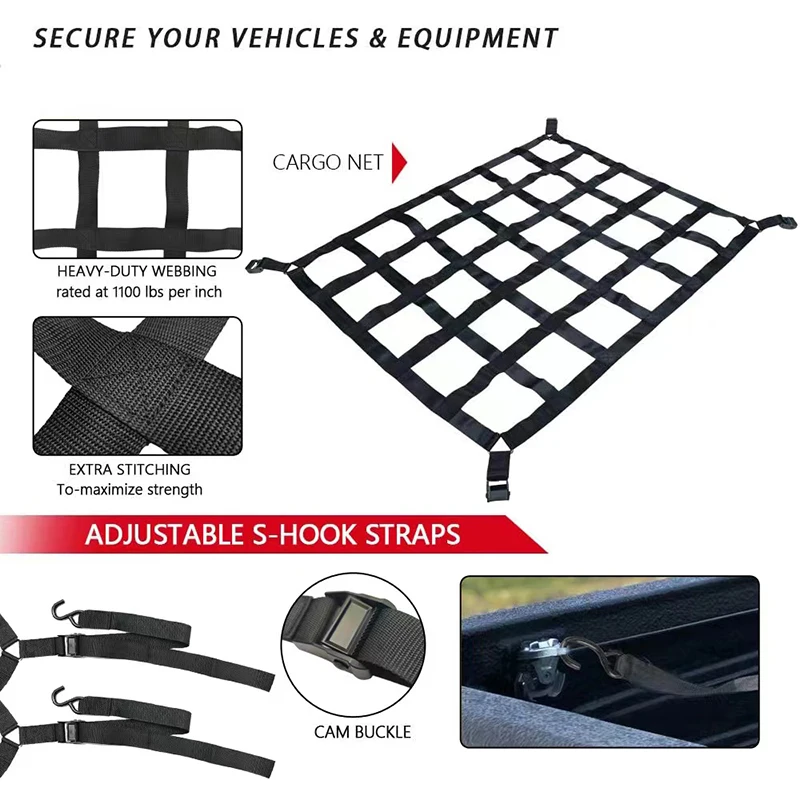 It is ideal for holding luggage, tools, debris, or bulky items securely.