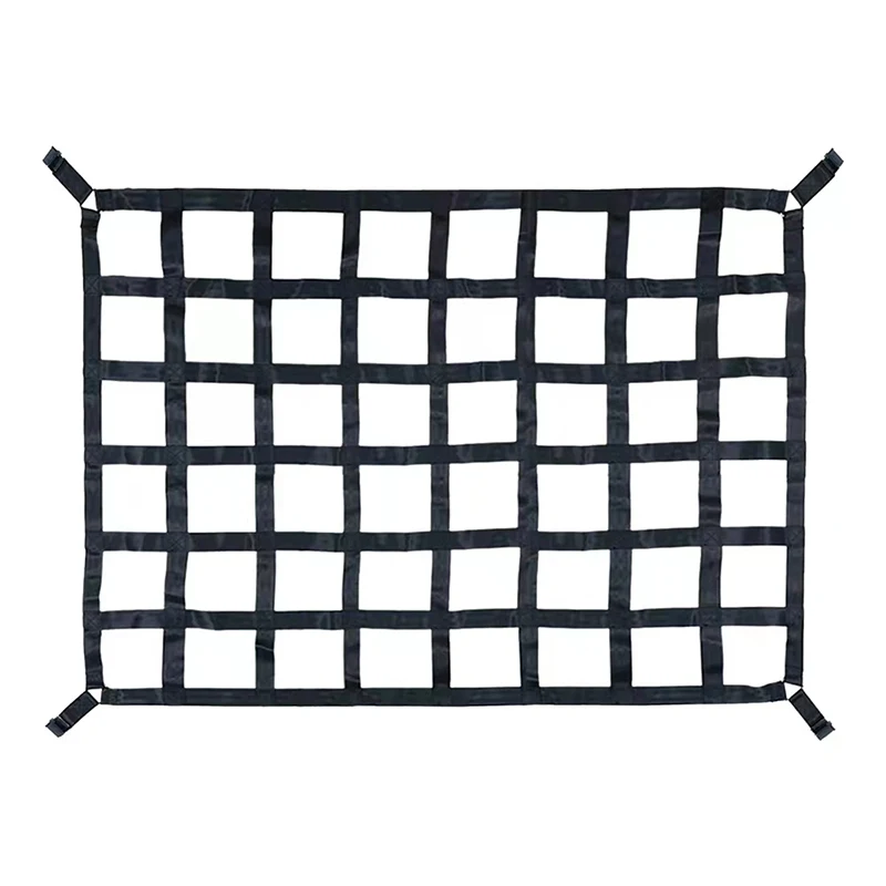 This heavy-duty mesh cargo net is designed for securing luggage and large loads during transport.