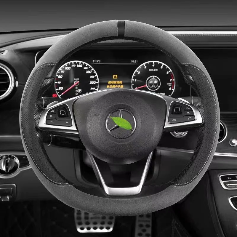 Upgrade your driving experience with this Suede Steering Wheel Cover, designed for comfort, style, and protection year-round. Its ultra-thin, non-slip design provides a secure grip, while the breathable material ensures hands stay cool and comfortable. Compatible with most round or D-shaped steering wheels.