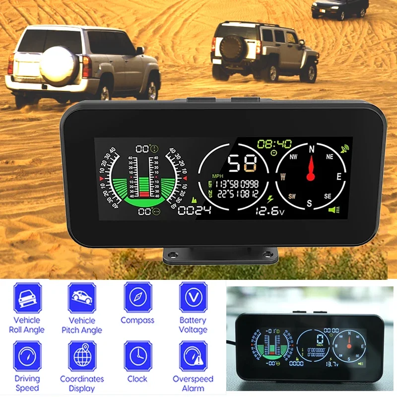 This digital speed slope meter combines multiple functions into one compact onboard computer ideal for motorcycles, off-road vehicles, and 4×4 adventures. It features an inclinometer that shows real-time pitch and roll angles to help you navigate steep terrain safely. The built-in GPS speedometer delivers accurate speed readings without relying on your vehicle’s speed sensor. A digital compass provides reliable directional guidance whether you’re on the trail or on the road. The vibrant display also includes a clock and voltmeter to keep you informed of time and electrical system status. Designed for rugged conditions, it’s durable enough for dirt bikes, ATVs, and off-road vehicles alike. Easy installation lets you mount it on your dashboard or handlebars with minimal effort. The intuitive interface ensures clear visibility and quick data insight while riding. This multifunctional meter enhances situational awareness for riders and drivers who demand precision and performance. Perfect as a practical accessory for outdoor enthusiasts and all-terrain explorers.