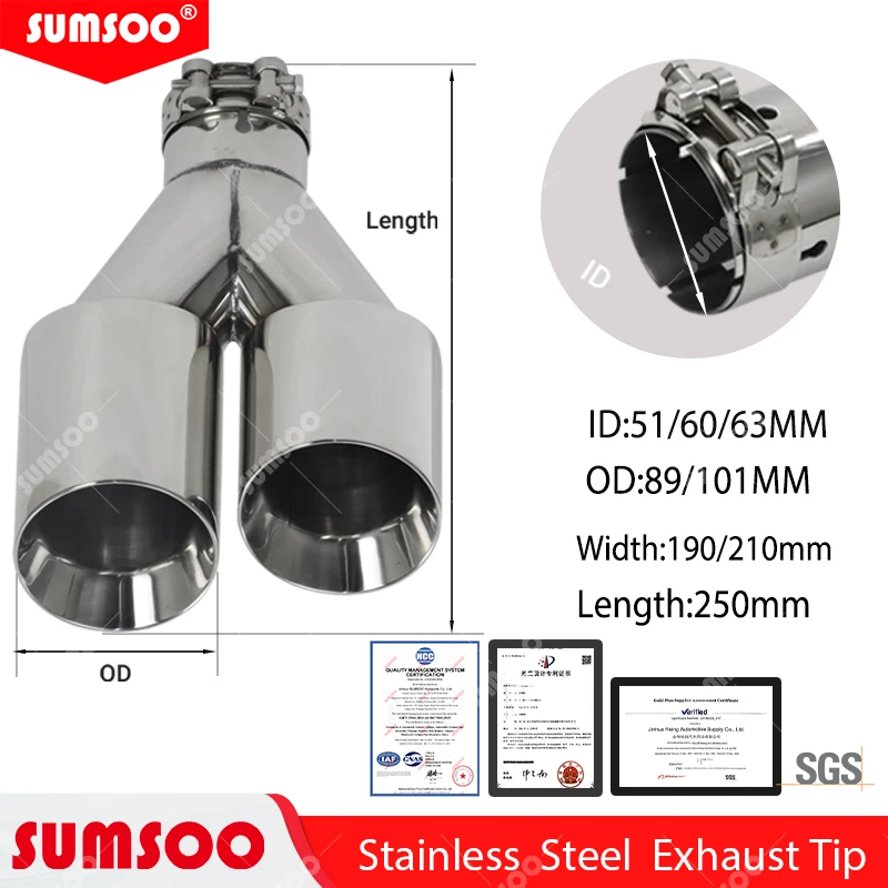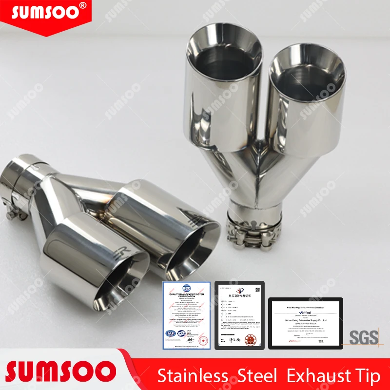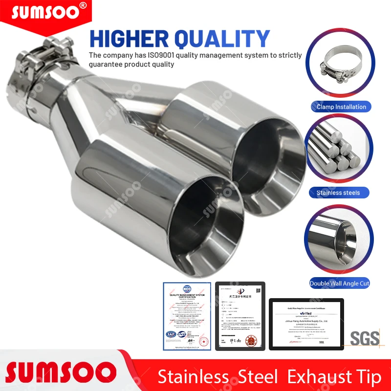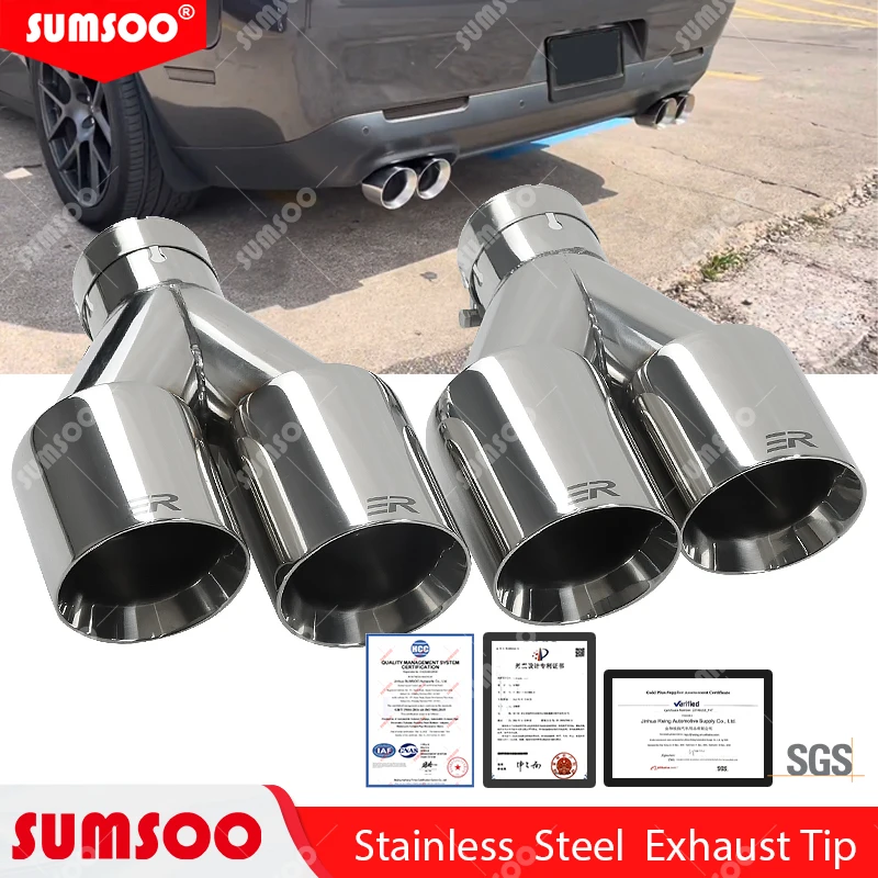 The polished double-outlet design instantly enhances the appearance of your car, making it look more dynamic and performance-oriented. Installation is quick and simple—just clamp it onto the existing exhaust pipe for an instant visual upgrade.