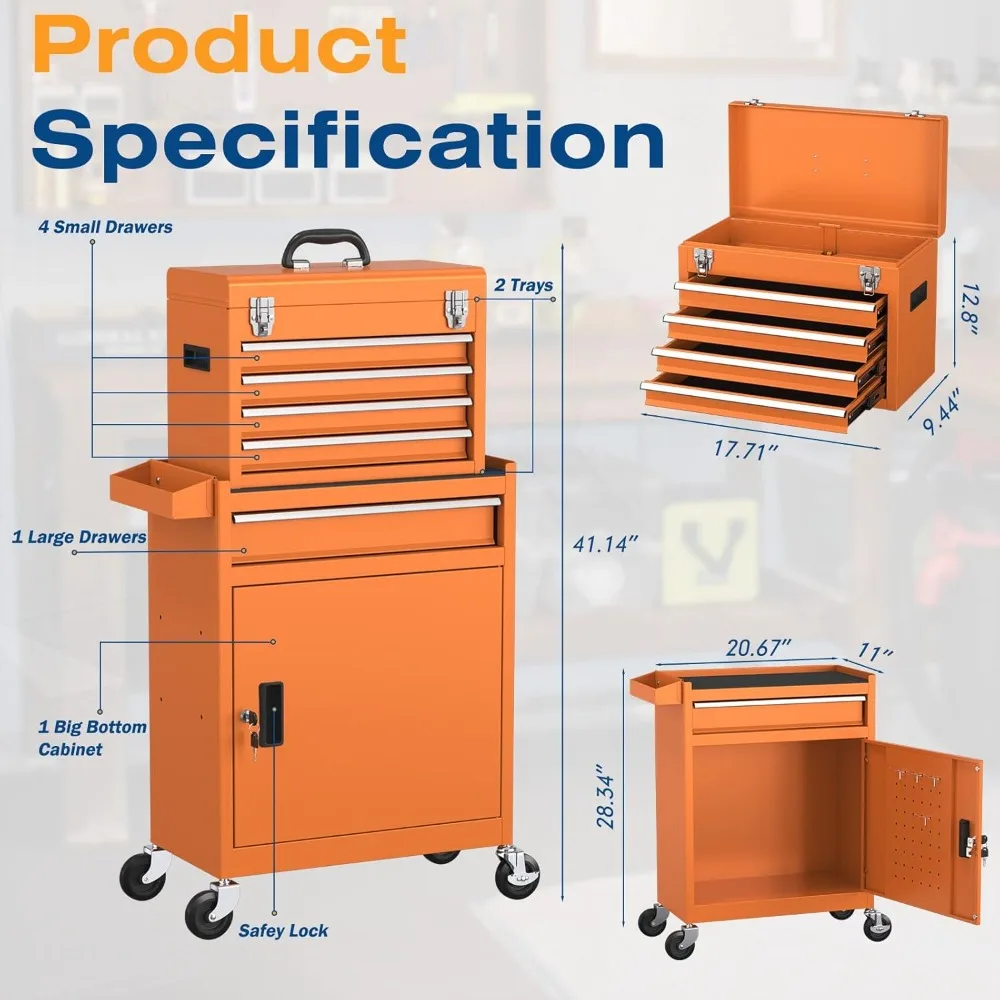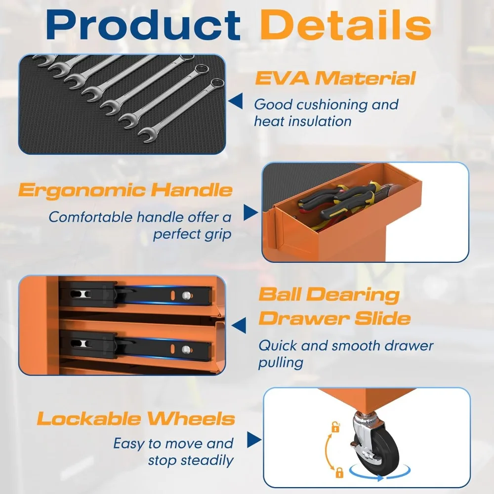 This rolling tool chest offers versatile storage with multiple drawers and compartments.