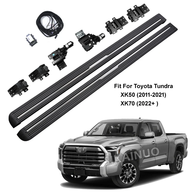 These automatic power running boards are designed specifically for Toyota Tundra Double and Crew Cab models.