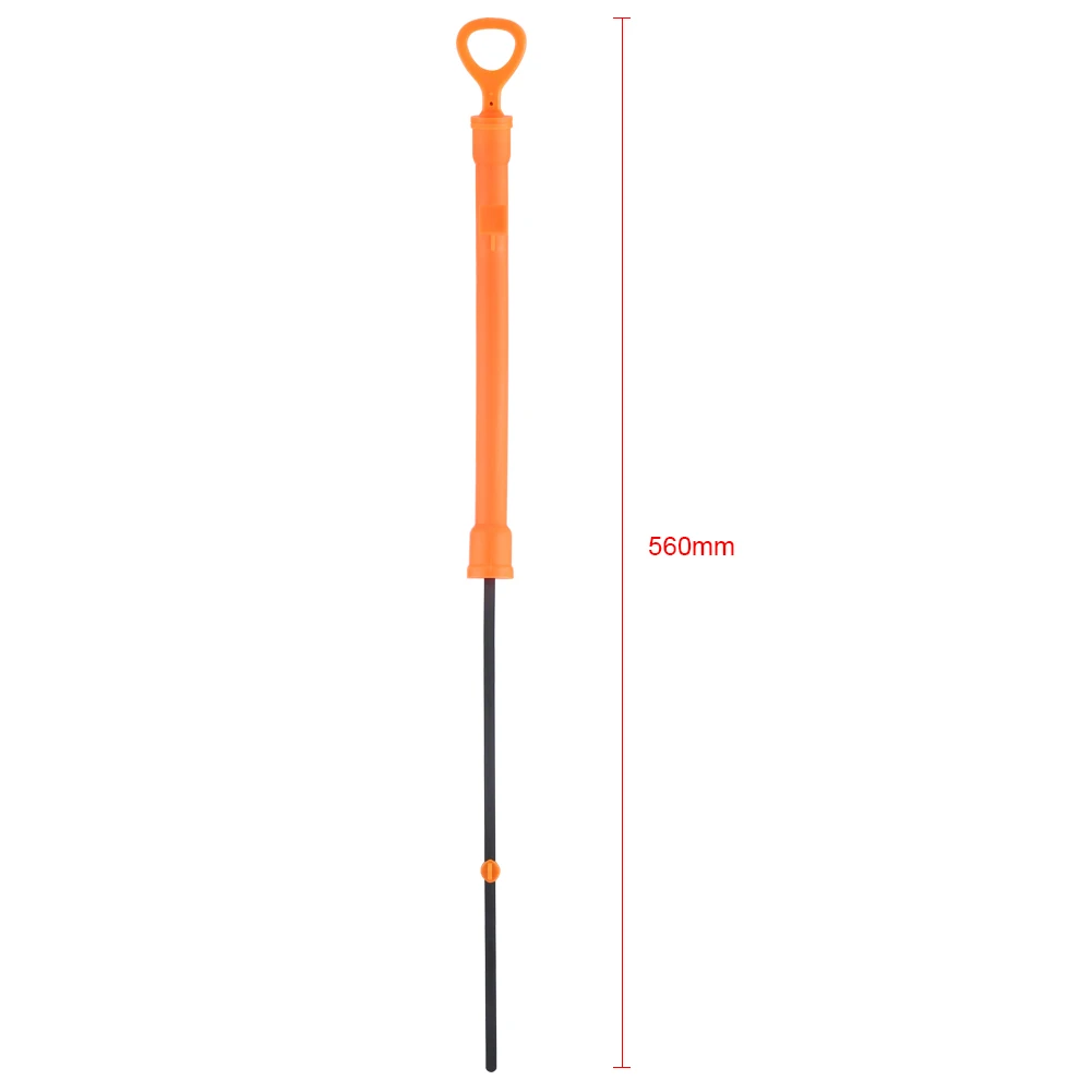 The dipstick provides accurate oil level readings for proper engine maintenance.