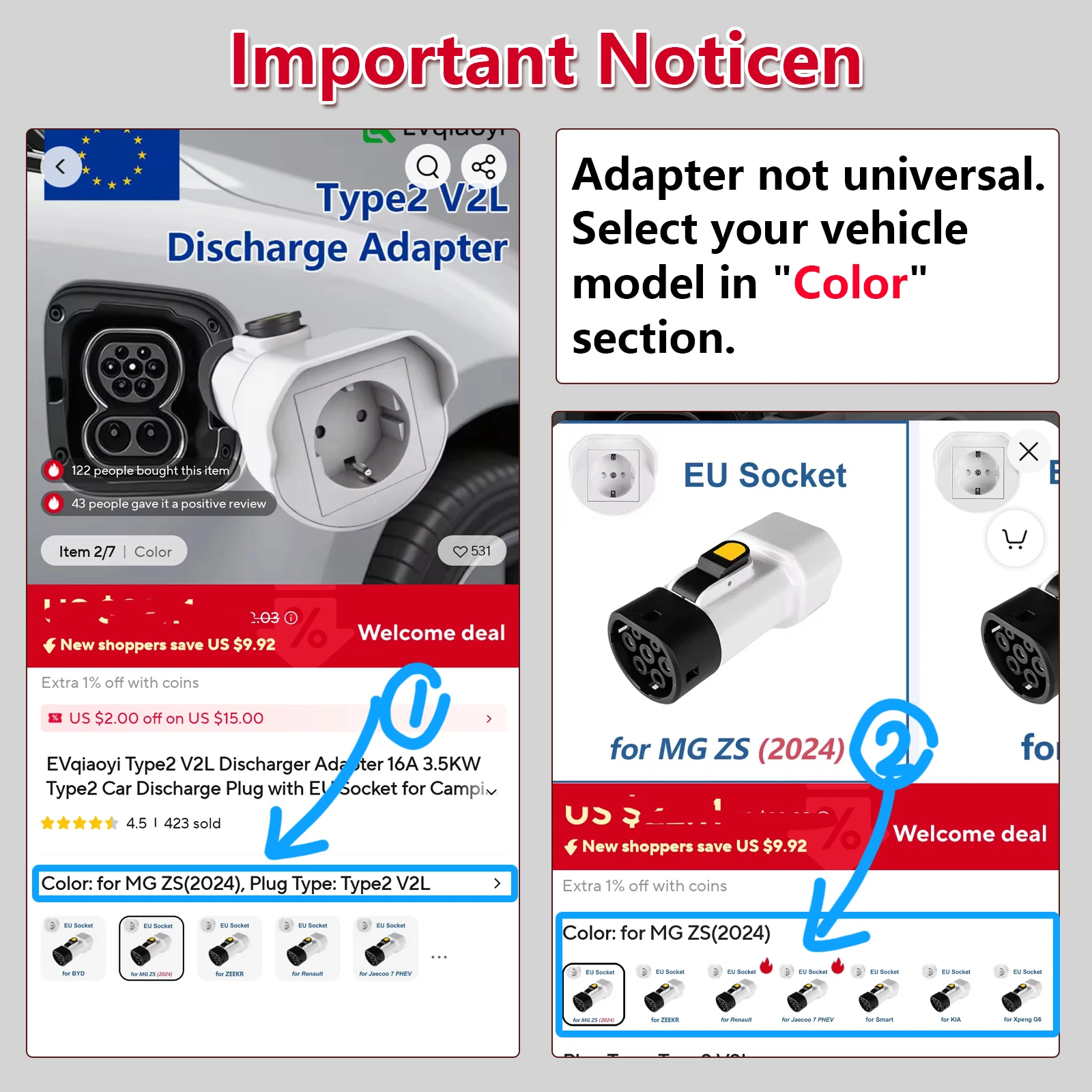 The adapter is compatible with V2L-supported vehicles from brands such as BYD, Jaecoo, MG, and Renault.