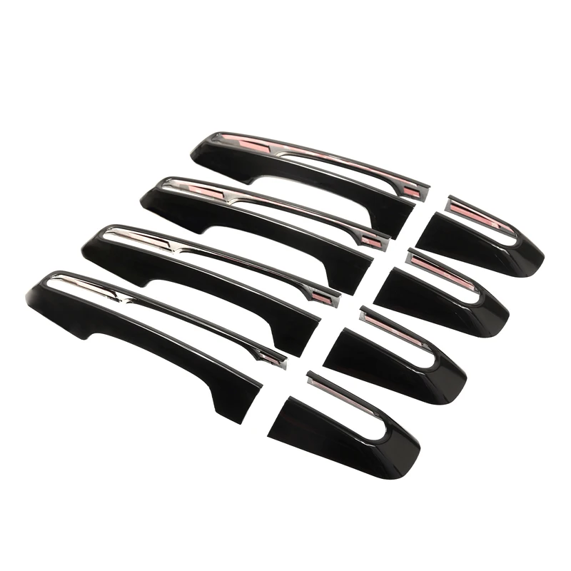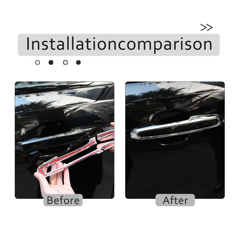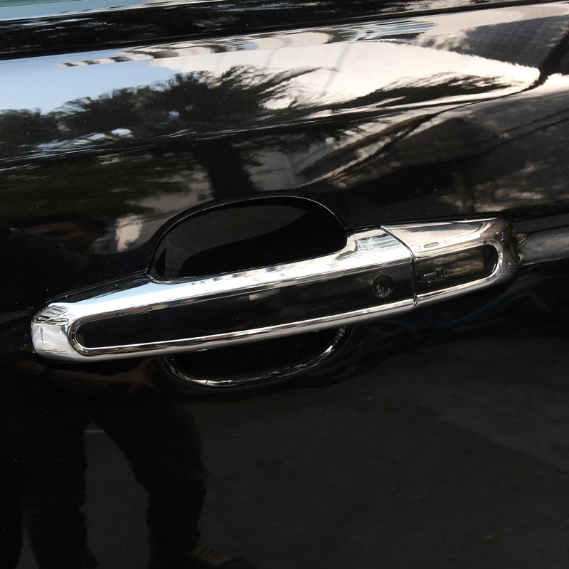 These chrome exterior side door handle cover trims are designed for Jaguar E-PACE, XE, XF, XFL, and F-PACE models.