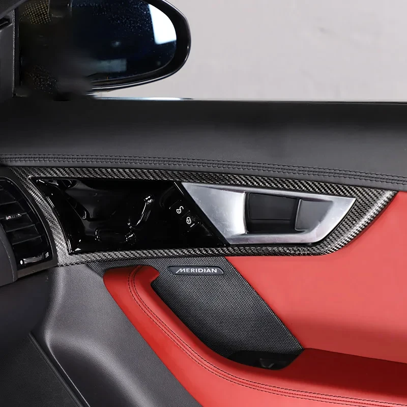 This real carbon fiber door handle frame and seat adjustment panel sticker is designed for Jaguar F-TYPE models from 2013 to 2025.
