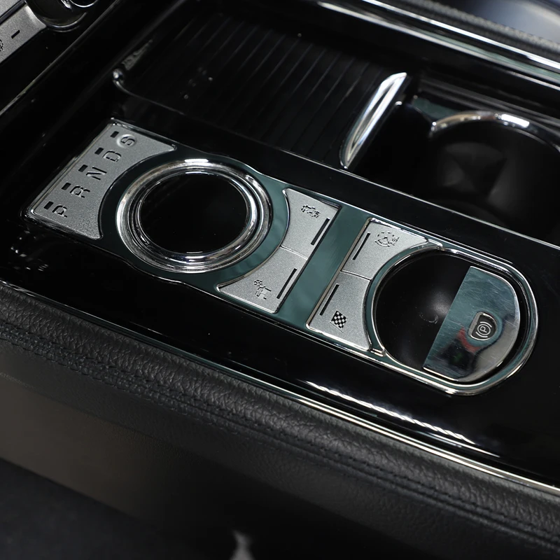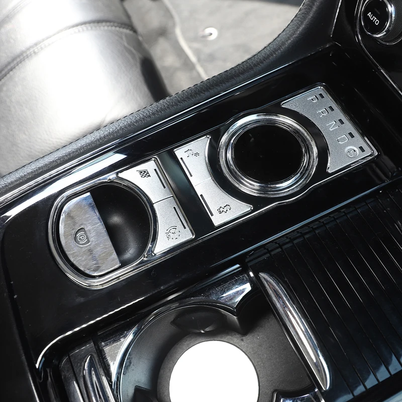 This aluminum alloy shift button frame is designed for Jaguar XF 2008–2015 and XJ 2010–2019 models.