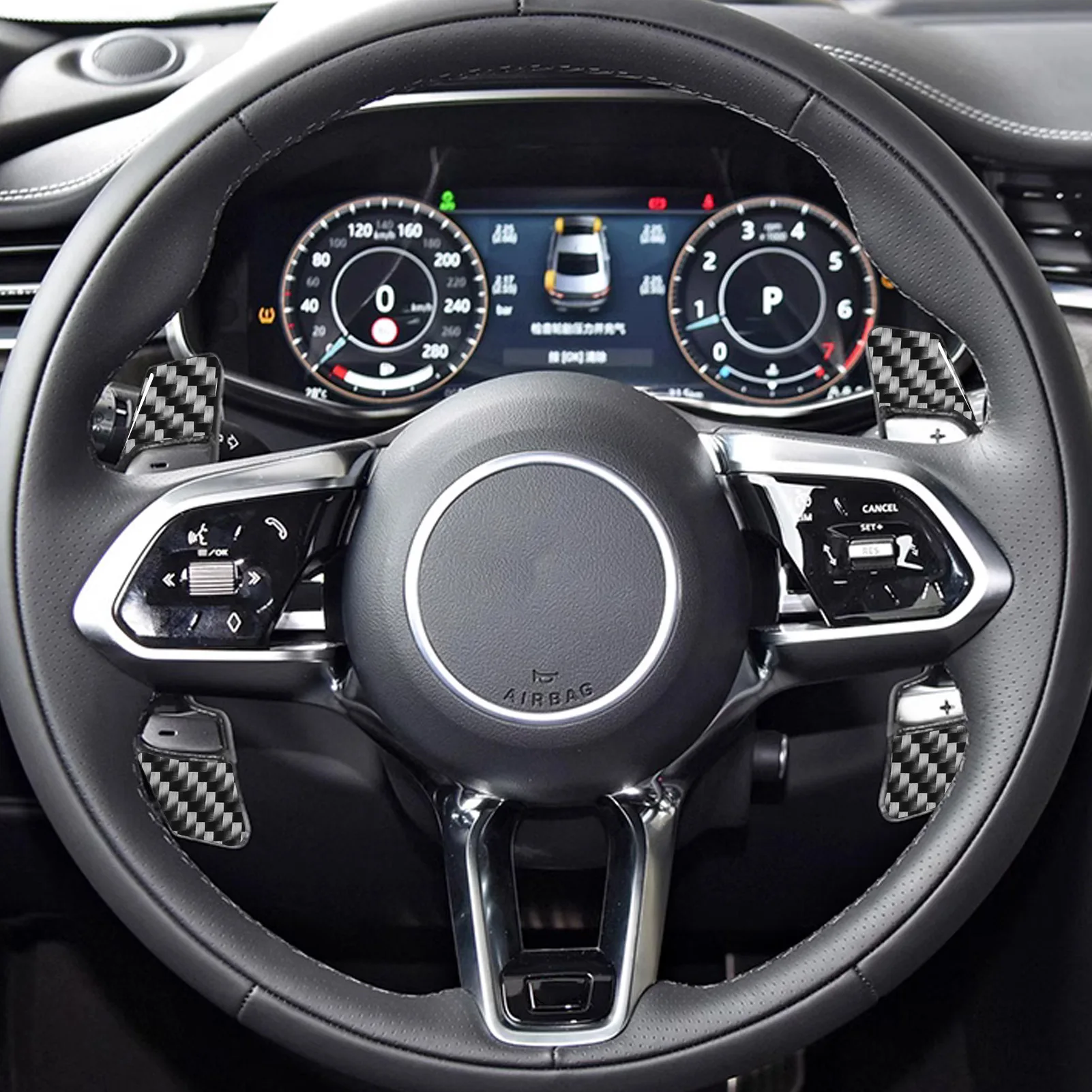 These carbon fiber shift paddles are designed to upgrade Jaguar steering wheel interiors.