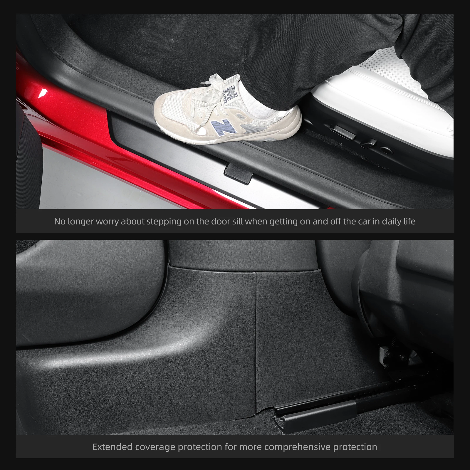 This door sill strip guard is designed specifically for the Tesla Model 3 Highland 2024–2025.
