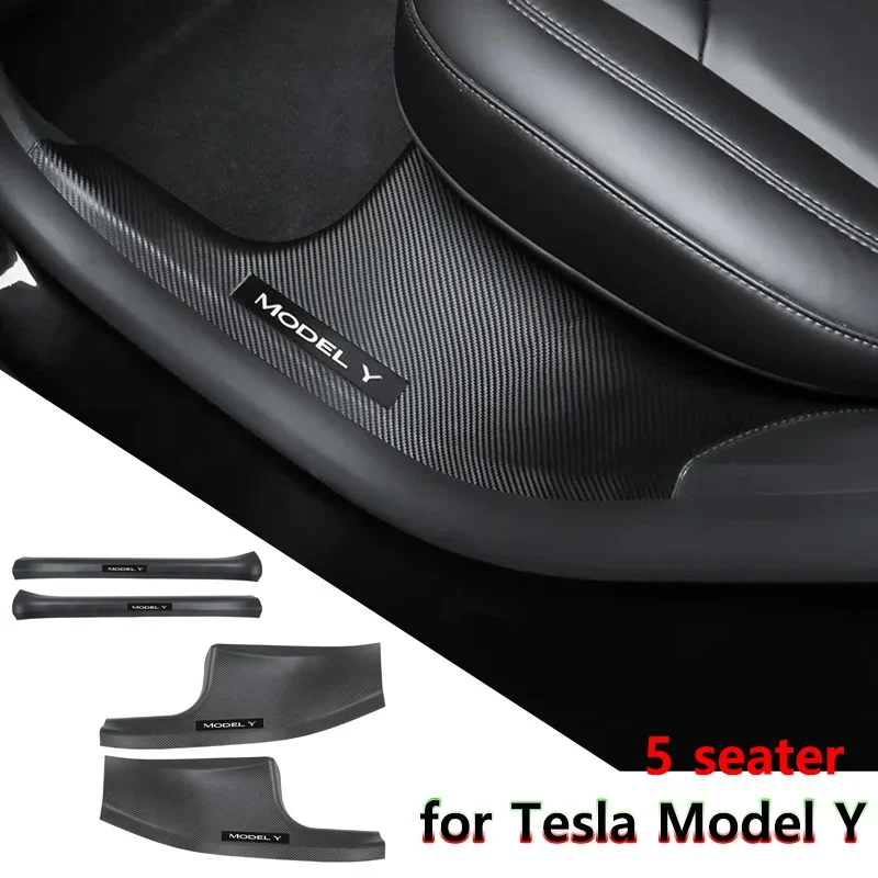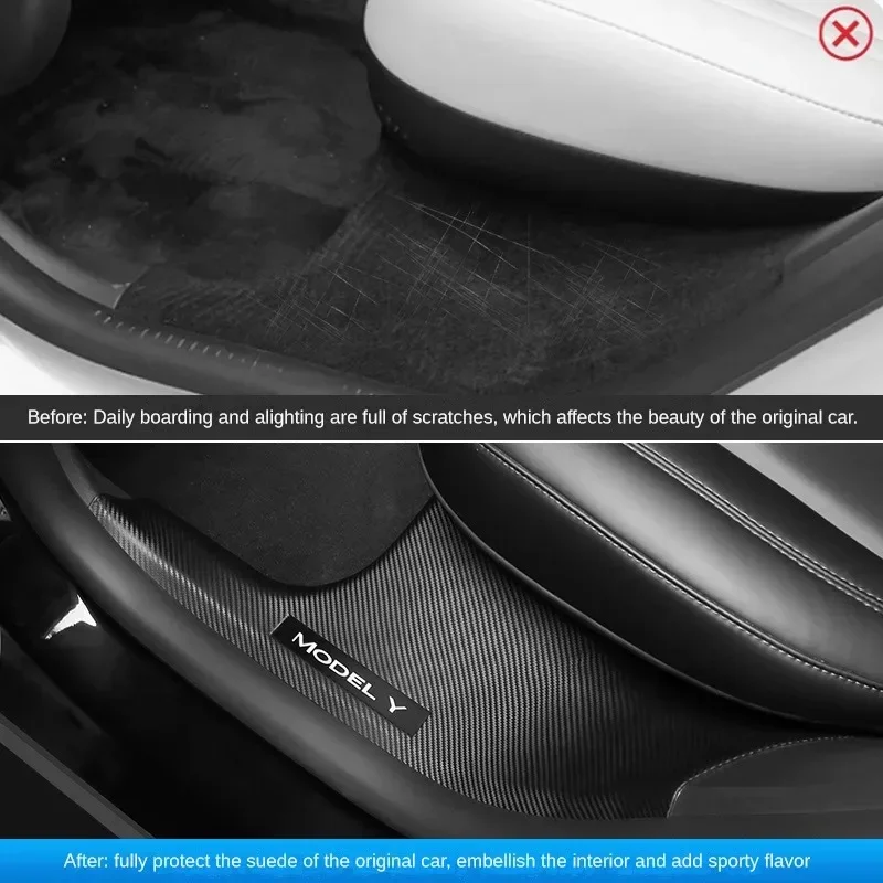 These door sill protector covers are designed for the Tesla Model Y 2023–2024.