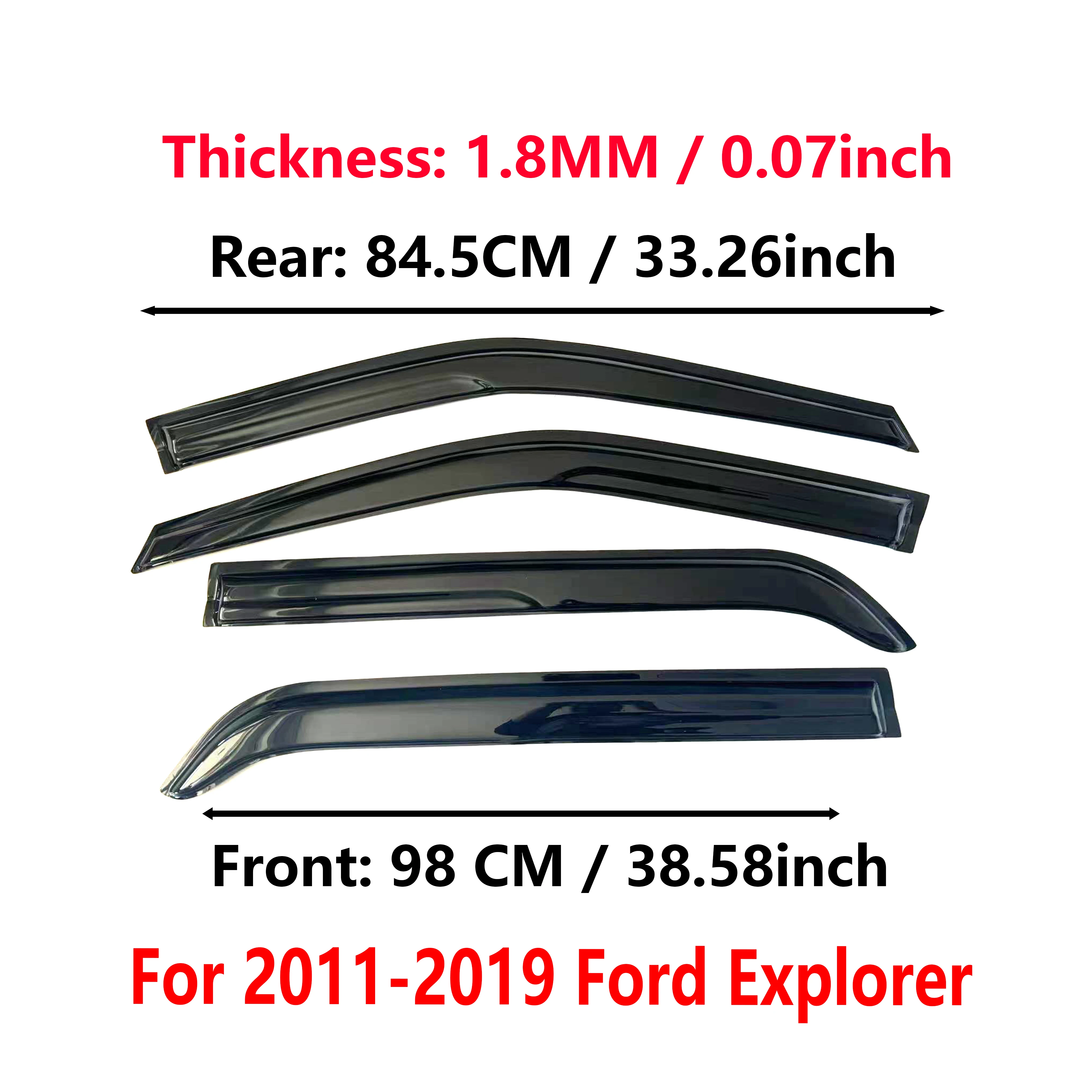 Protect your Ford Explorer (2011–2019) from sun, rain, and wind with this 4-piece Window Sunshade & Visor Set. Designed as rain guards and window visors, they allow windows to remain slightly open for ventilation while preventing water and debris from entering. Durable, stylish, and easy to install, they enhance both the appearance and functionality of your Explorer.
