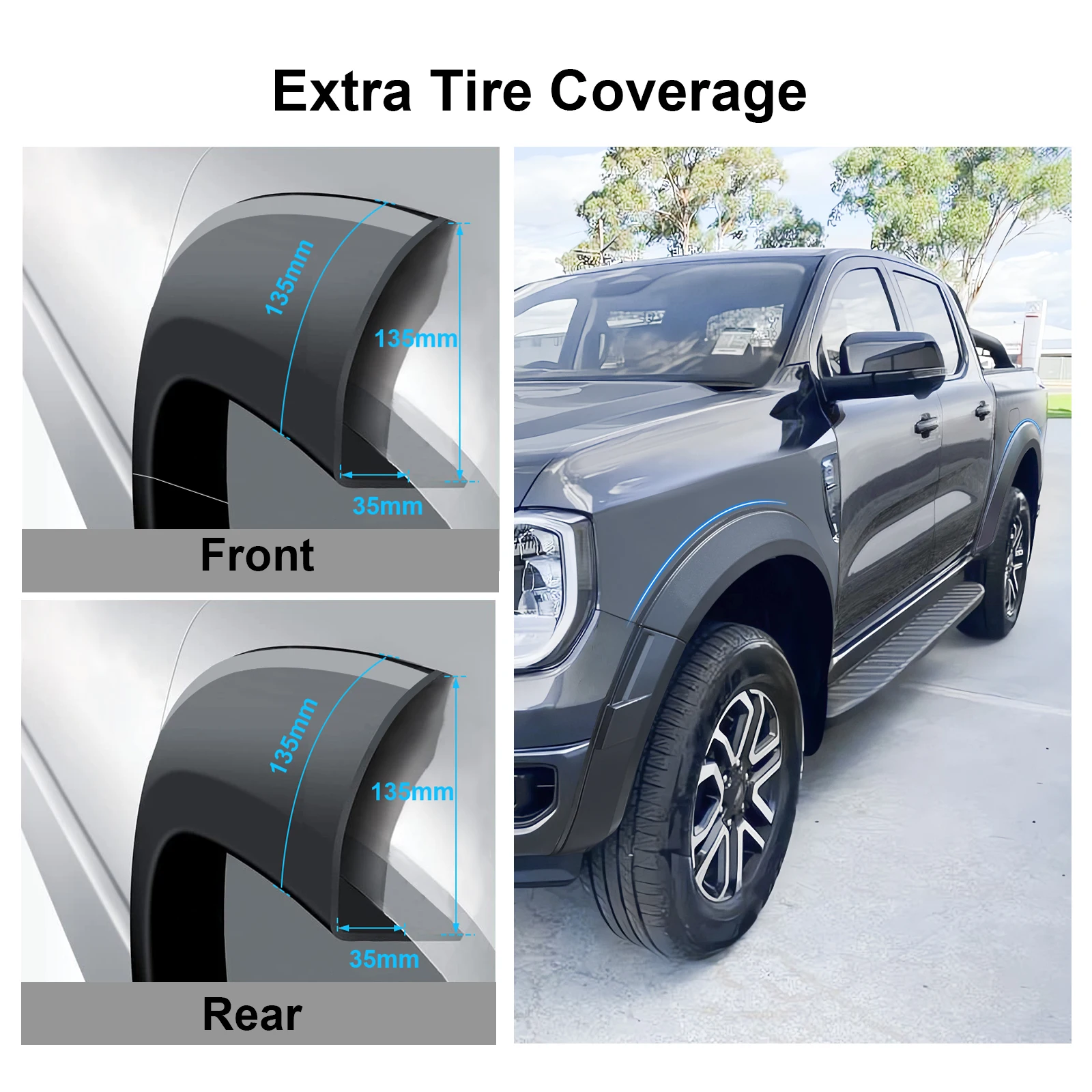 They provide wider wheel coverage to protect your truck from mud, rocks, and road debris.