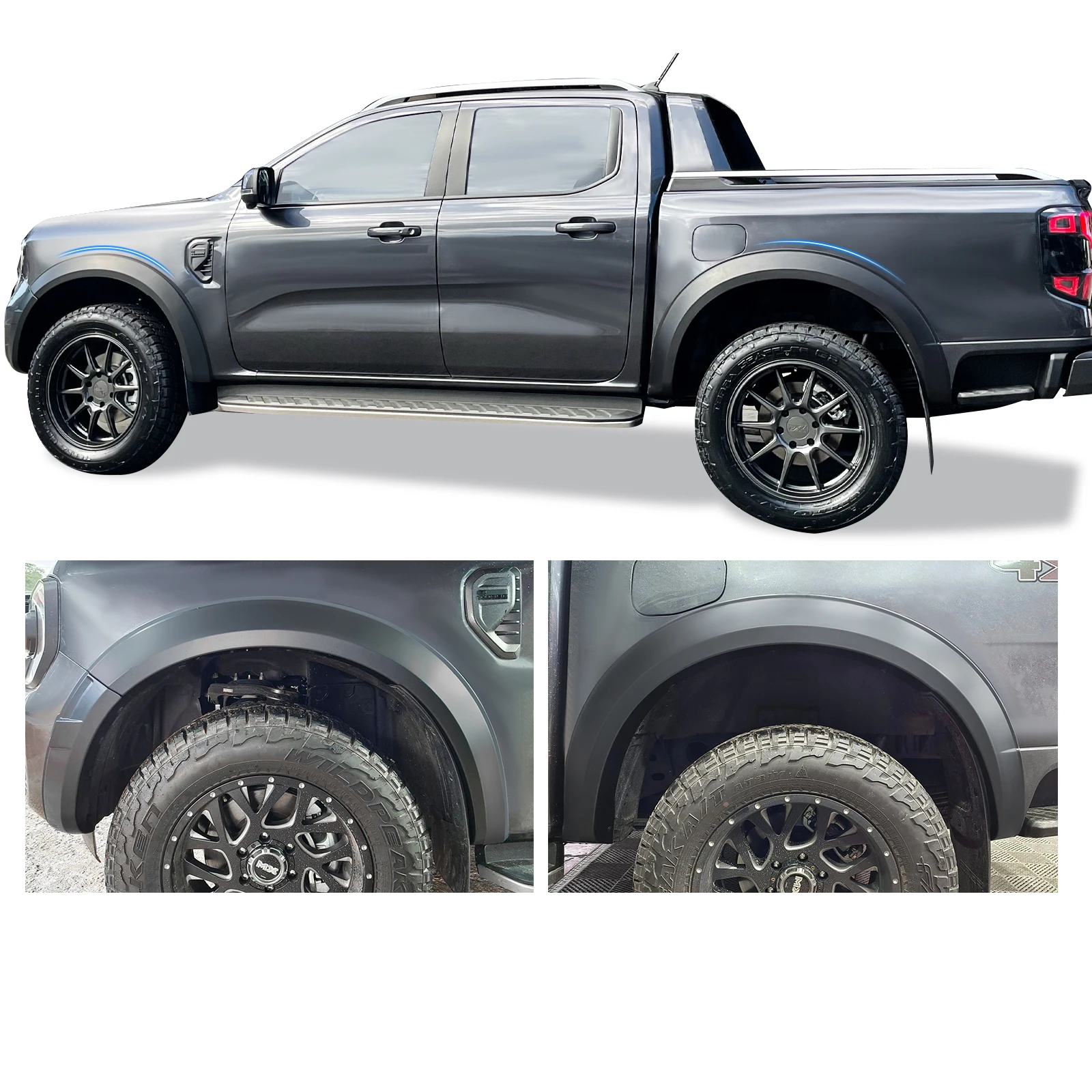 These wheel arch style guard fender flares are designed for the 2023–2024 Next-Gen Ford Ranger.