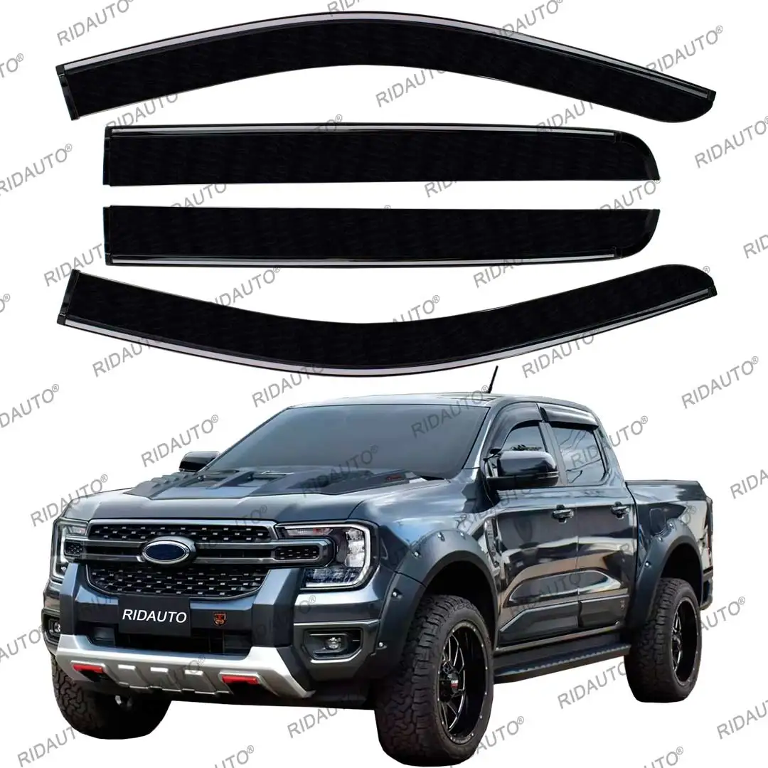 Upgrade your 2023–2025 Ford Ranger T9 Raptor or Wildtrak with these Side Door Window Visor Deflectors. Designed to protect against rain, wind, and sun, they allow you to keep windows slightly open for ventilation without water entering the cabin. Durable and stylish, these visors enhance both the look and functionality of your truck.