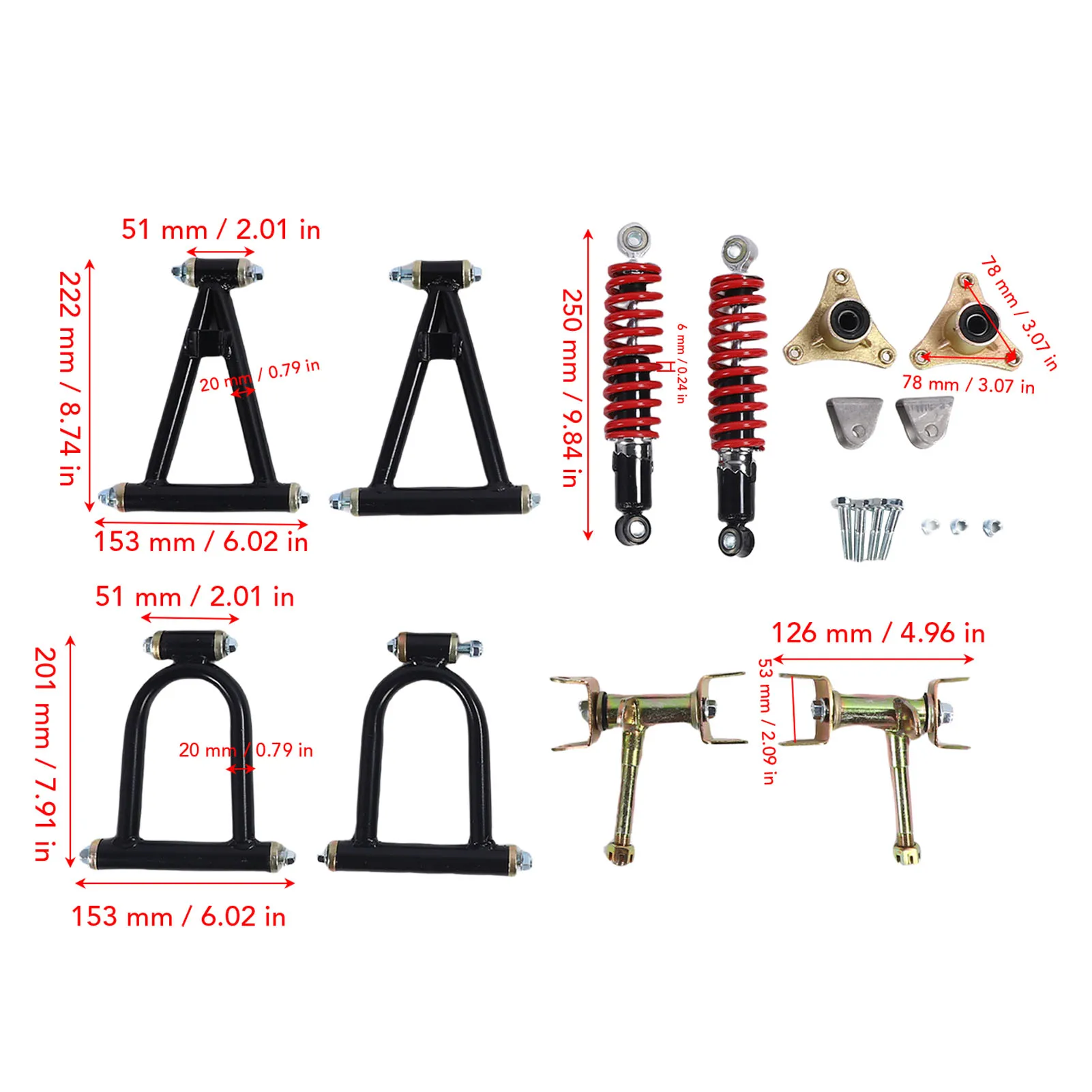 Upgrade your ATV’s handling, strength, and overall ride comfort with this Front Suspension Arm Kit, featuring reinforced upper and lower swingarms paired with a performance front suspension shock. Designed for heavy-duty off-road use, this kit provides superior stability, smoother damping, and enhanced control whether you’re trail riding, racing, or tackling rugged terrain.