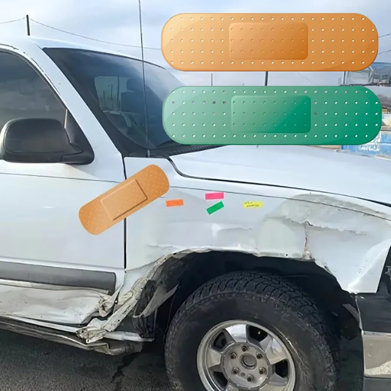 Designed to resemble a bandage, it creates a humorous “repaired” effect on dents or scratches.