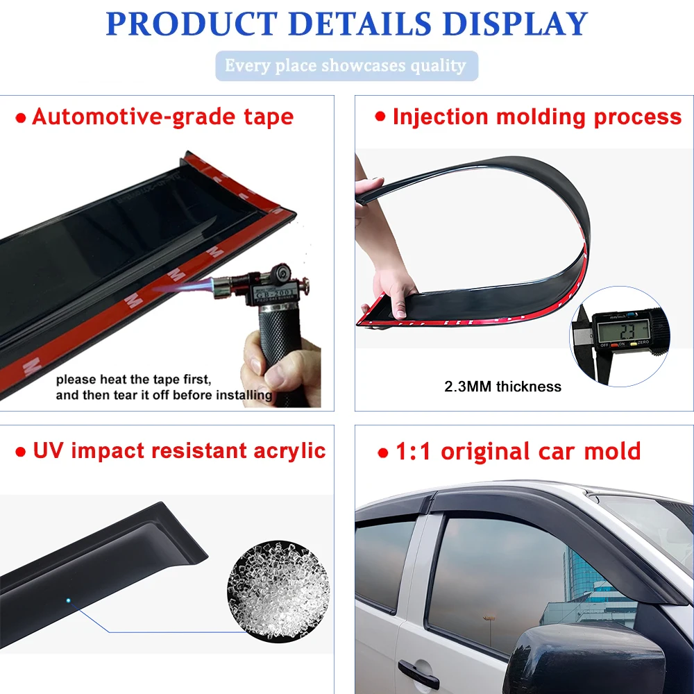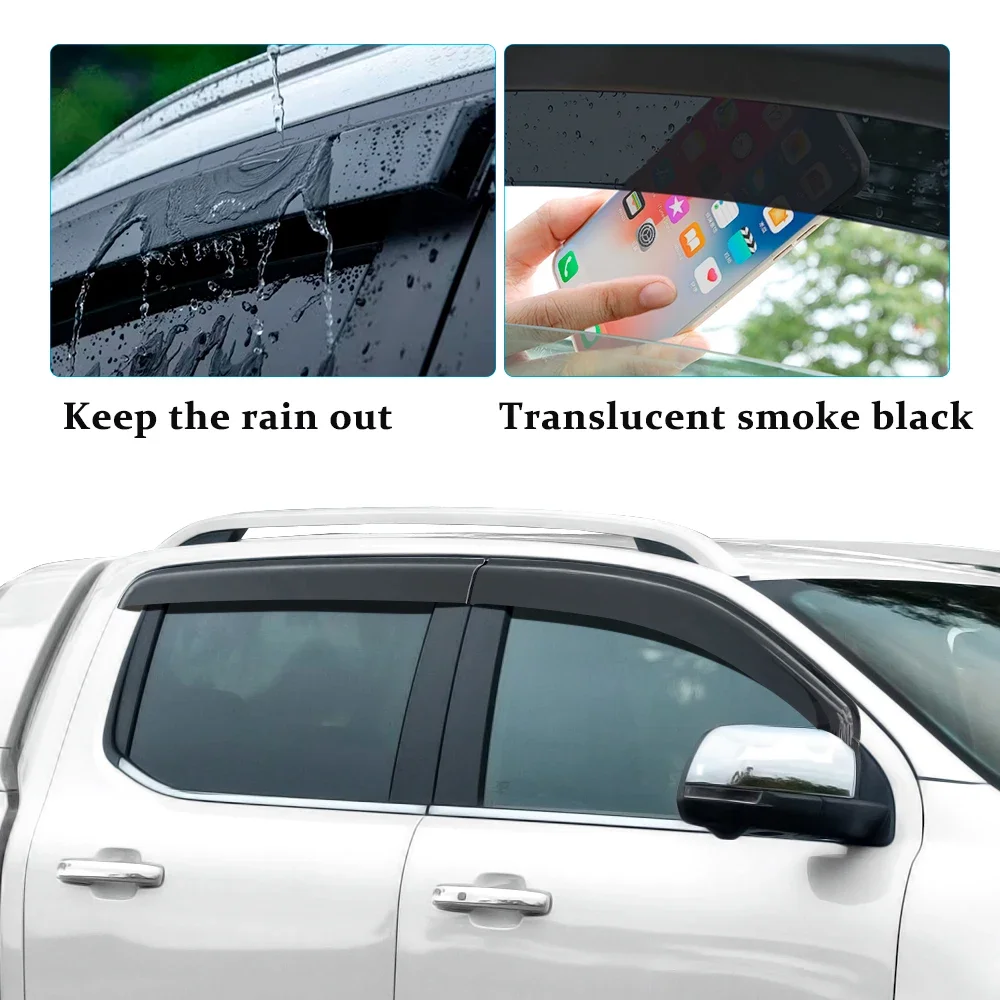 Upgrade your Isuzu D-Max (2012–2019) with these 4-Piece Window Visors / Weathershields / Sun & Rain Guards / Wind Deflectors. Designed for dual cab models, they protect your vehicle interior from rain, wind, and sun glare while allowing ventilation. Made from durable, high-quality materials, these visors are easy to install and add both functionality and style to your D-Max.
