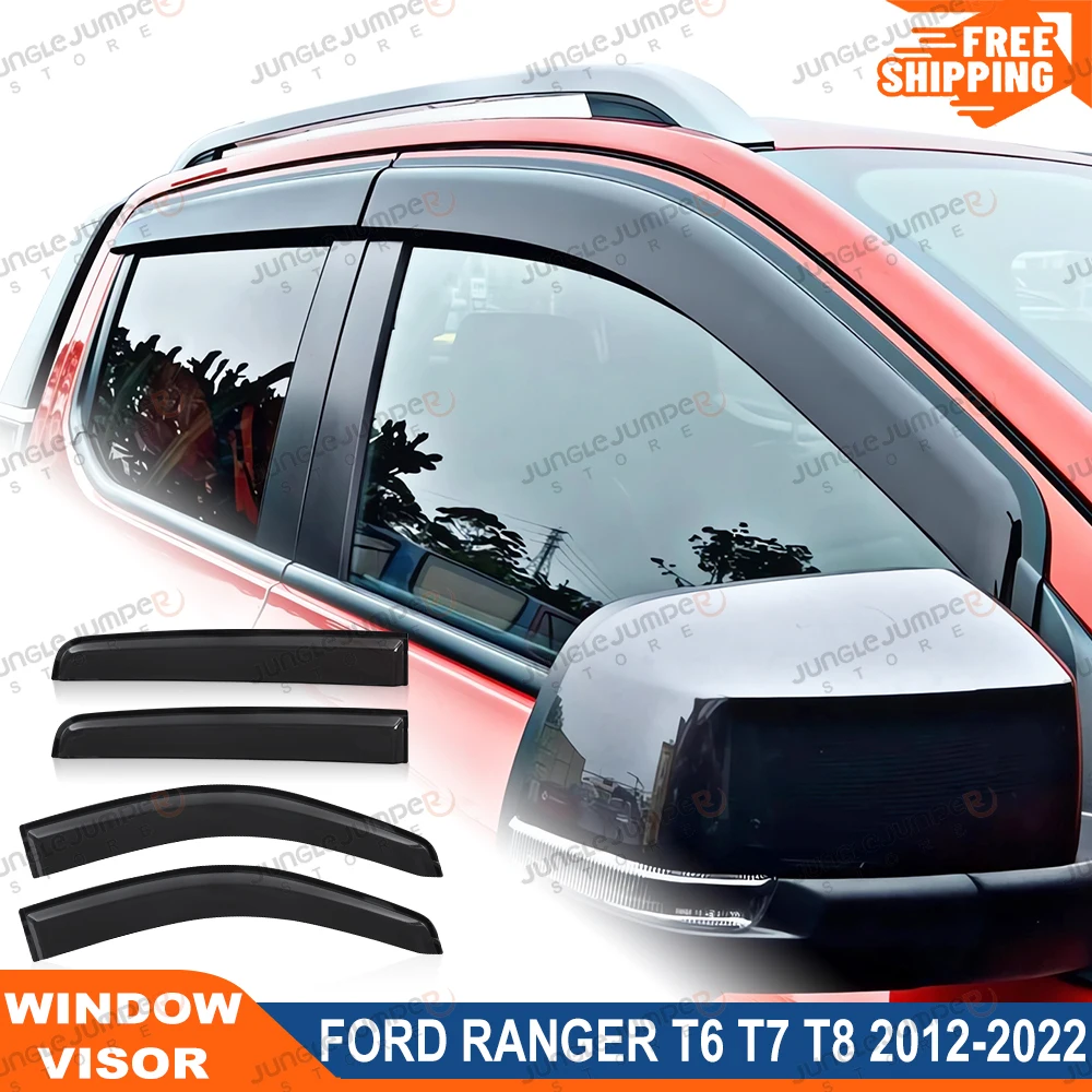 These window visors are designed for Ford Ranger T6, T7, and T8 models from 2012–2022, including Ranger Raptor variants.