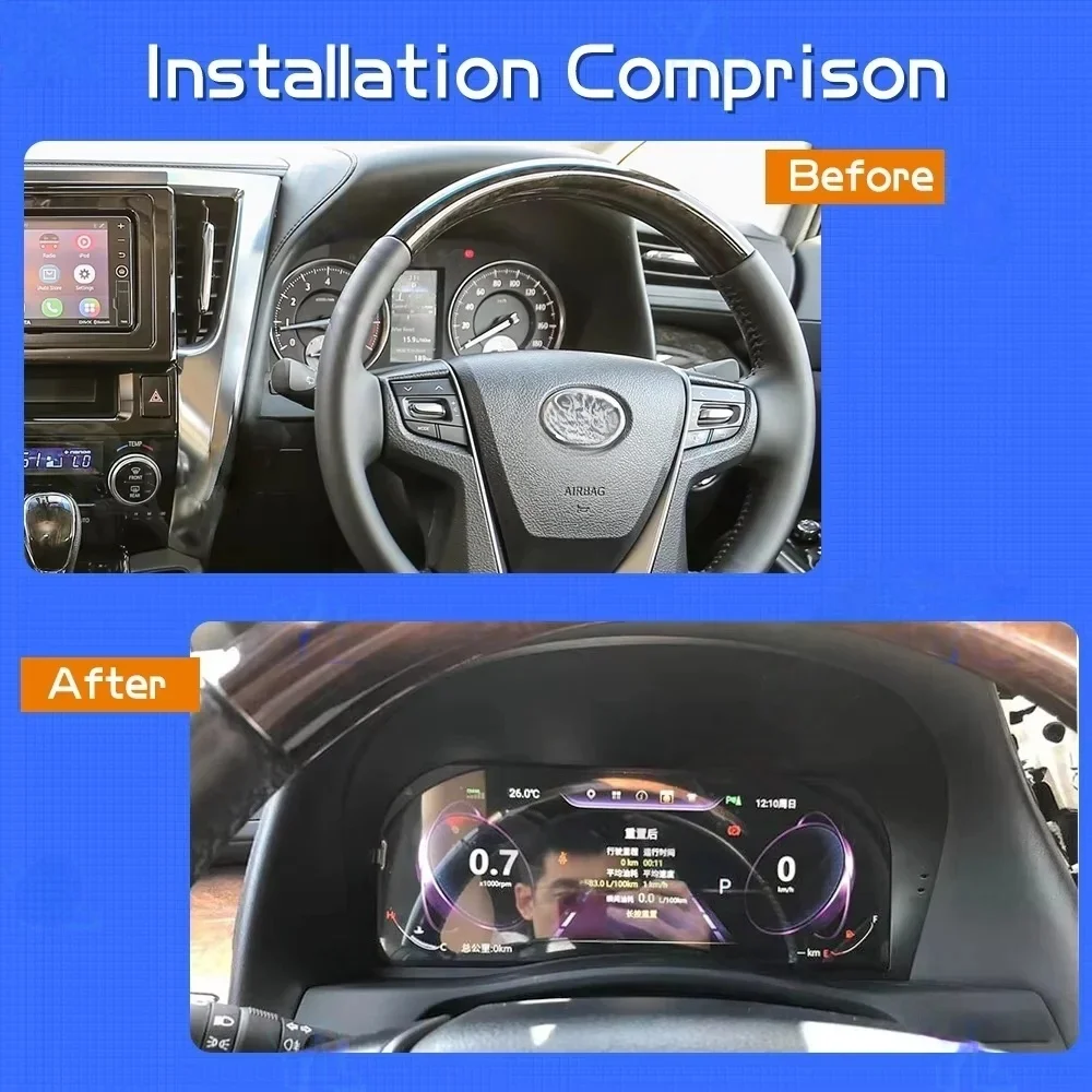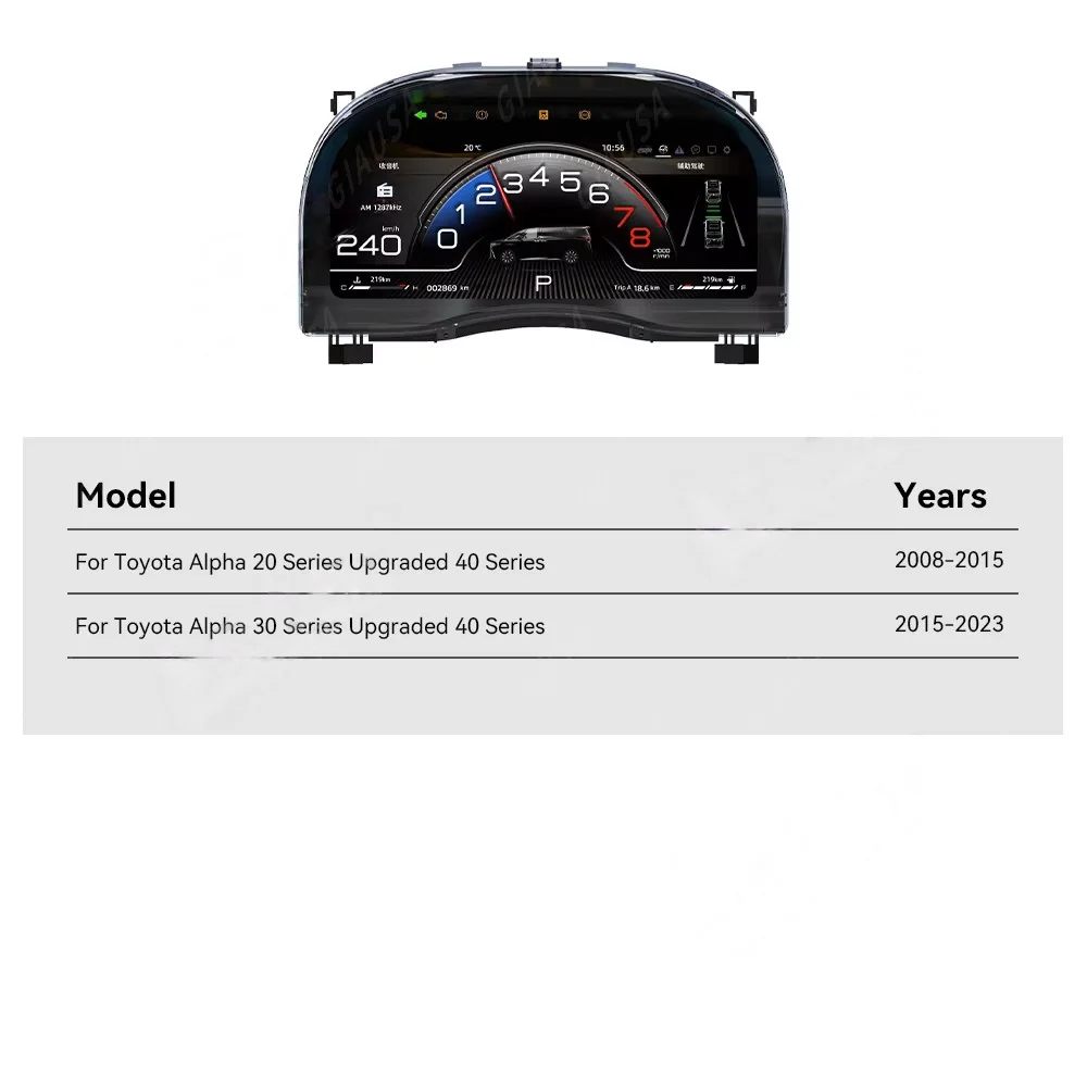 This 12.3-inch LCD instrument panel is designed for Toyota Vellfire and Alphard 20 and 30 Series models from 2008 to 2023.