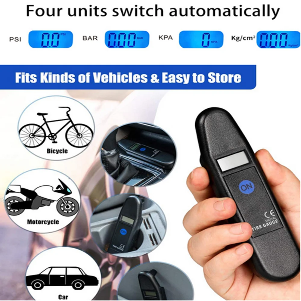 This LCD Digital Tire Pressure Gauge is a compact, high-precision handheld tool designed to measure tire pressure quickly and accurately for cars, motorcycles, bicycles, SUVs, and more. Featuring a bright LCD display, it delivers clear readings in multiple units—PSI, KPA, BAR, and KG/CM²—making it suitable for drivers worldwide.