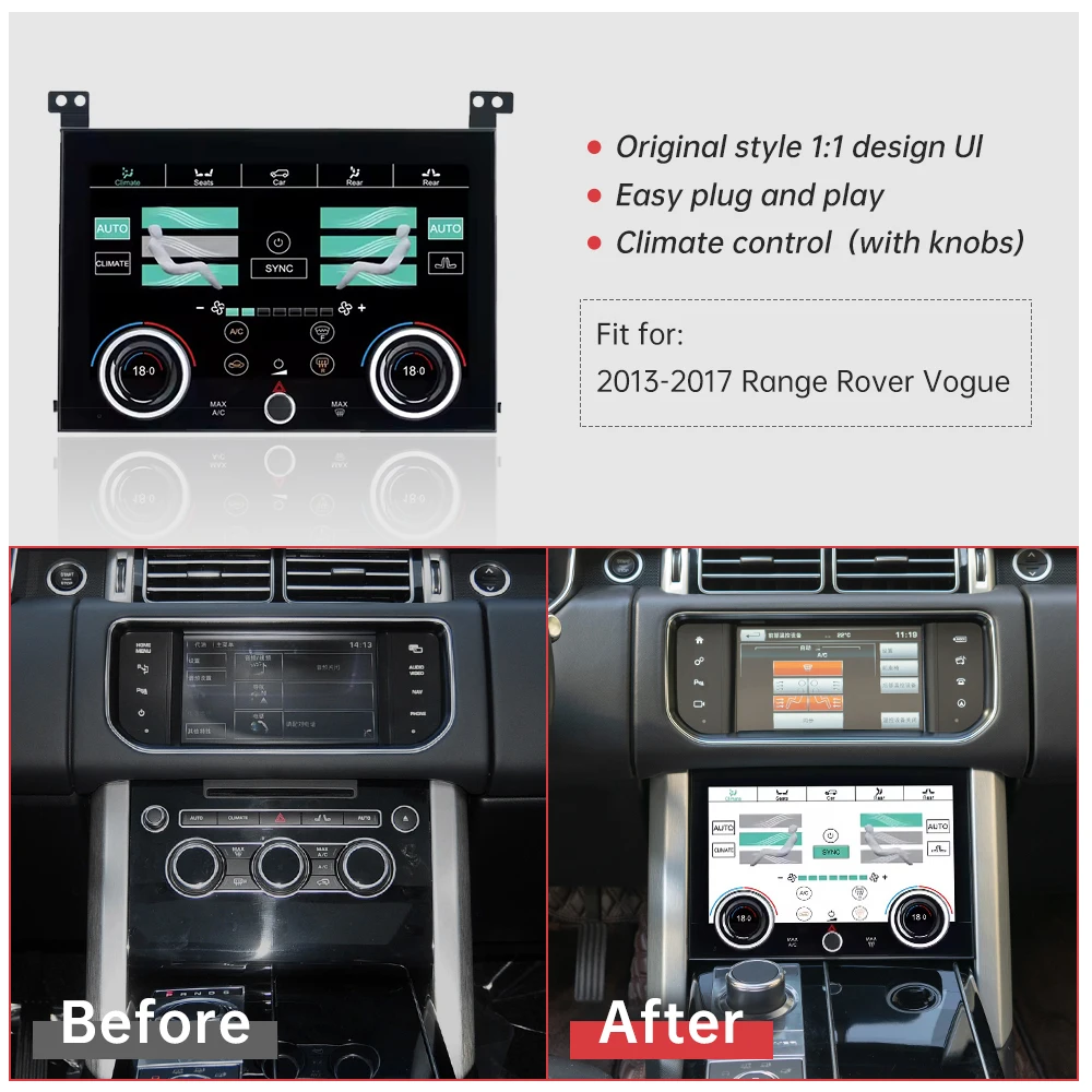 Upgrade your interior with this LCD digital touch screen climate control display designed for Land Rover Range Rover Vogue models from 2013 to 2017.