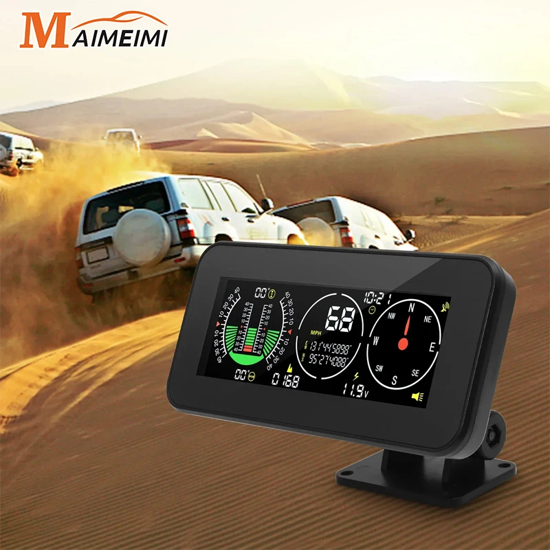 This M60 digital speed slope meter combines an inclinometer, GPS speedometer, and compass into a single off-road accessory for 4×4 vehicles. The high-precision inclinometer displays real-time pitch and roll angles to assist with challenging terrain navigation. Its integrated GPS speedometer provides accurate vehicle speed readings without relying on the vehicle’s speed sensor. A digital compass helps you maintain direction during overland adventures and trail driving. The onboard computer display presents data clearly and intuitively, even in bright daylight. Designed for rugged off-road conditions, it adds valuable information for safe and confident driving. Easy to install on your dashboard or roll bar, it enhances situational awareness on and off the beaten path. The compact unit offers multifunction performance in a durable housing. Perfect for off-road enthusiasts, overlanders, and 4×4 drivers who want more insight into vehicle dynamics. Elevate your off-road experience with this multifunctional digital meter.