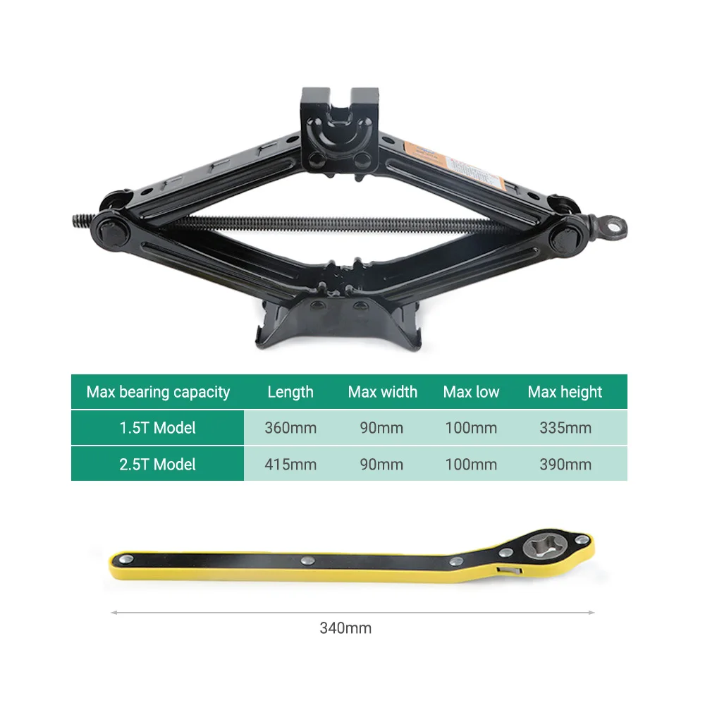The included labor-saving ratchet wrench allows easy lifting with minimal effort, while the reinforced scissor structure ensures long-lasting durability. Compact and easy to store, this jack is perfect for roadside kits, garages, and travel tools—ensuring you’re prepared for flat tires anytime, anywhere.
