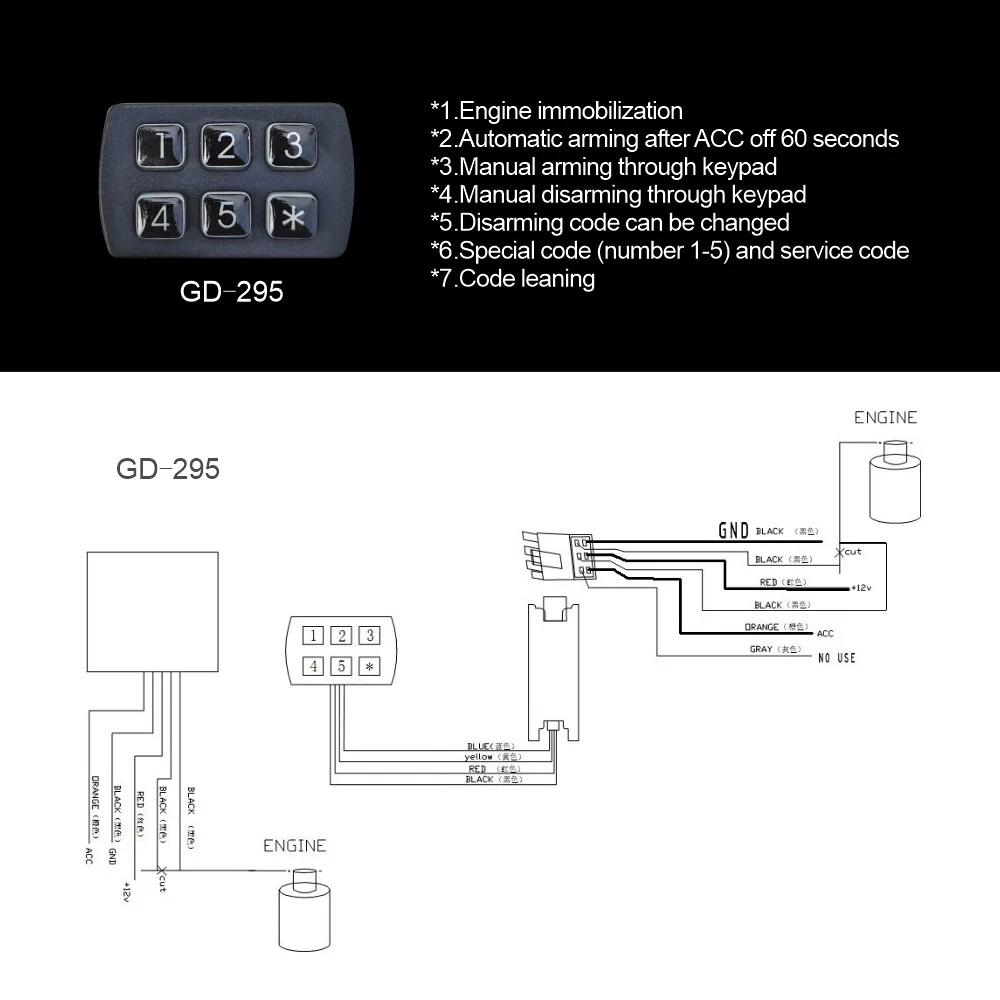 It uses a password keypad to immobilize the engine and prevent unauthorized starting.