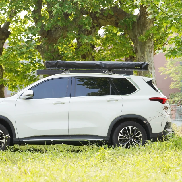 Its unique design covers the side and rear of the vehicle, creating a large sheltered area for camping and outdoor activities.